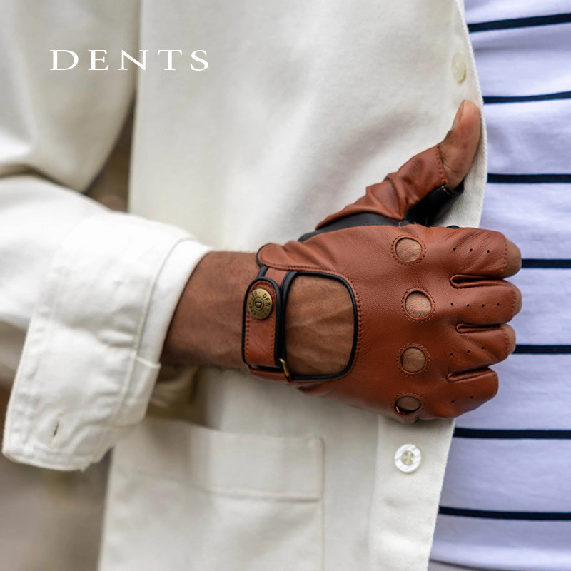 天猫F1专业赛车手同款|DENTS毛羊皮骑行机车半指男士手套5-1015礼盒装