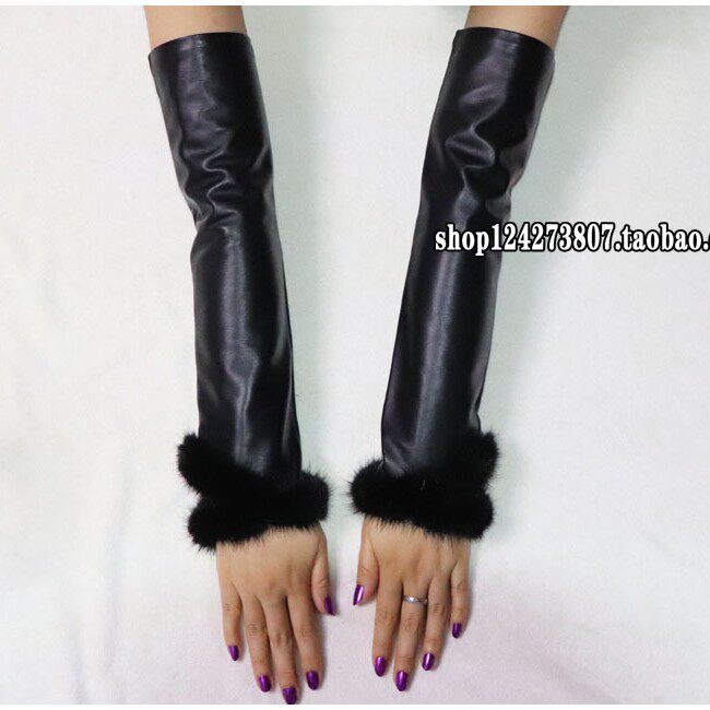 天猫皮袖女士真皮手套长款冬加绒保暖羊皮水貂毛手臂套袖套腕套假袖子