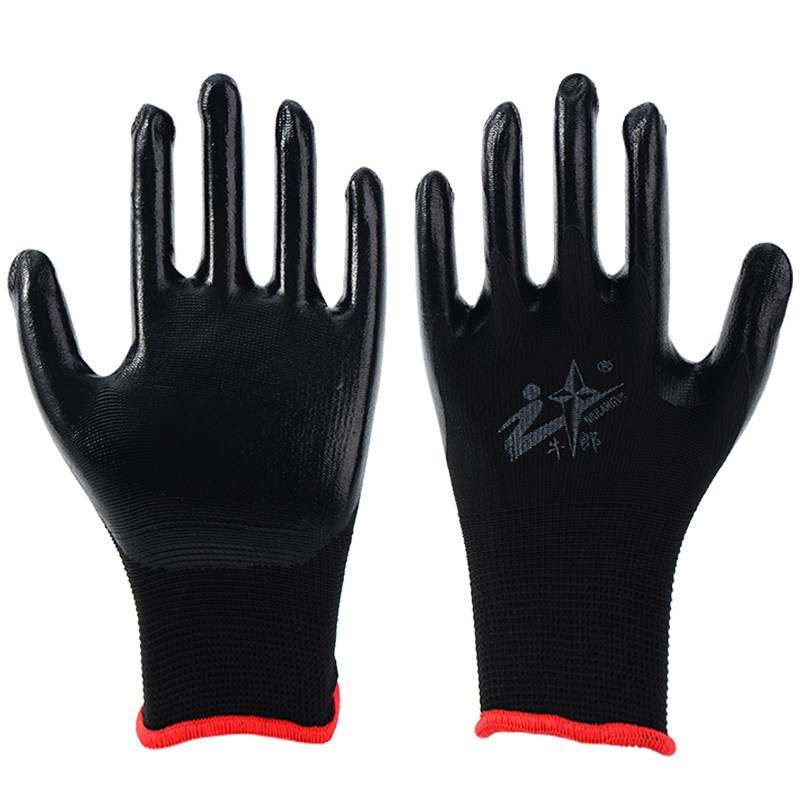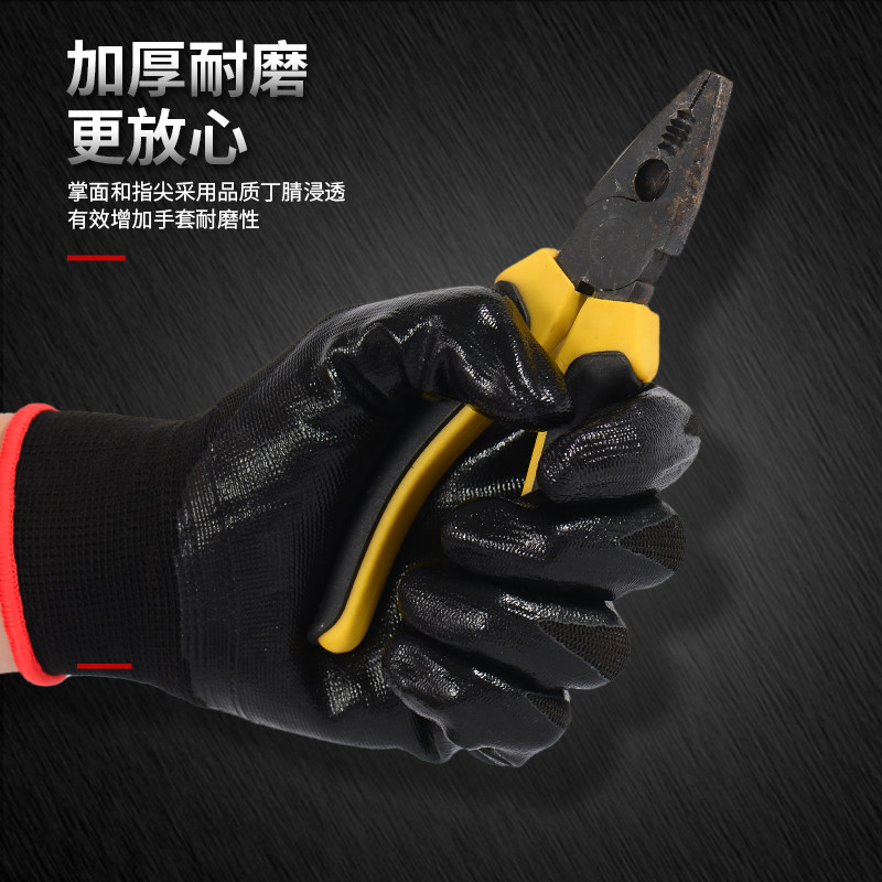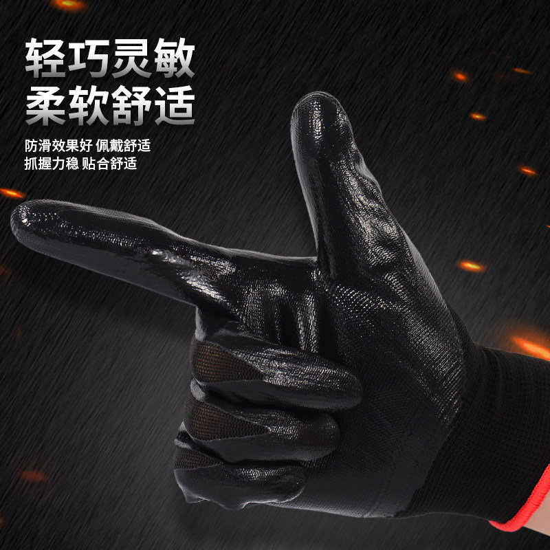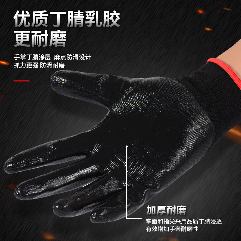 淘丁腈耐用劳保手套耐磨乳胶防滑防水建筑工地透气工地工作尼龙手套
