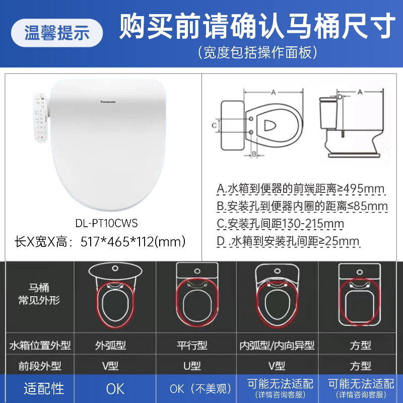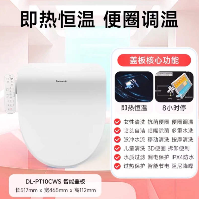 天猫松下智能马桶盖即热式日本坐便盖板全自动家用电动加热冲洗器PT10