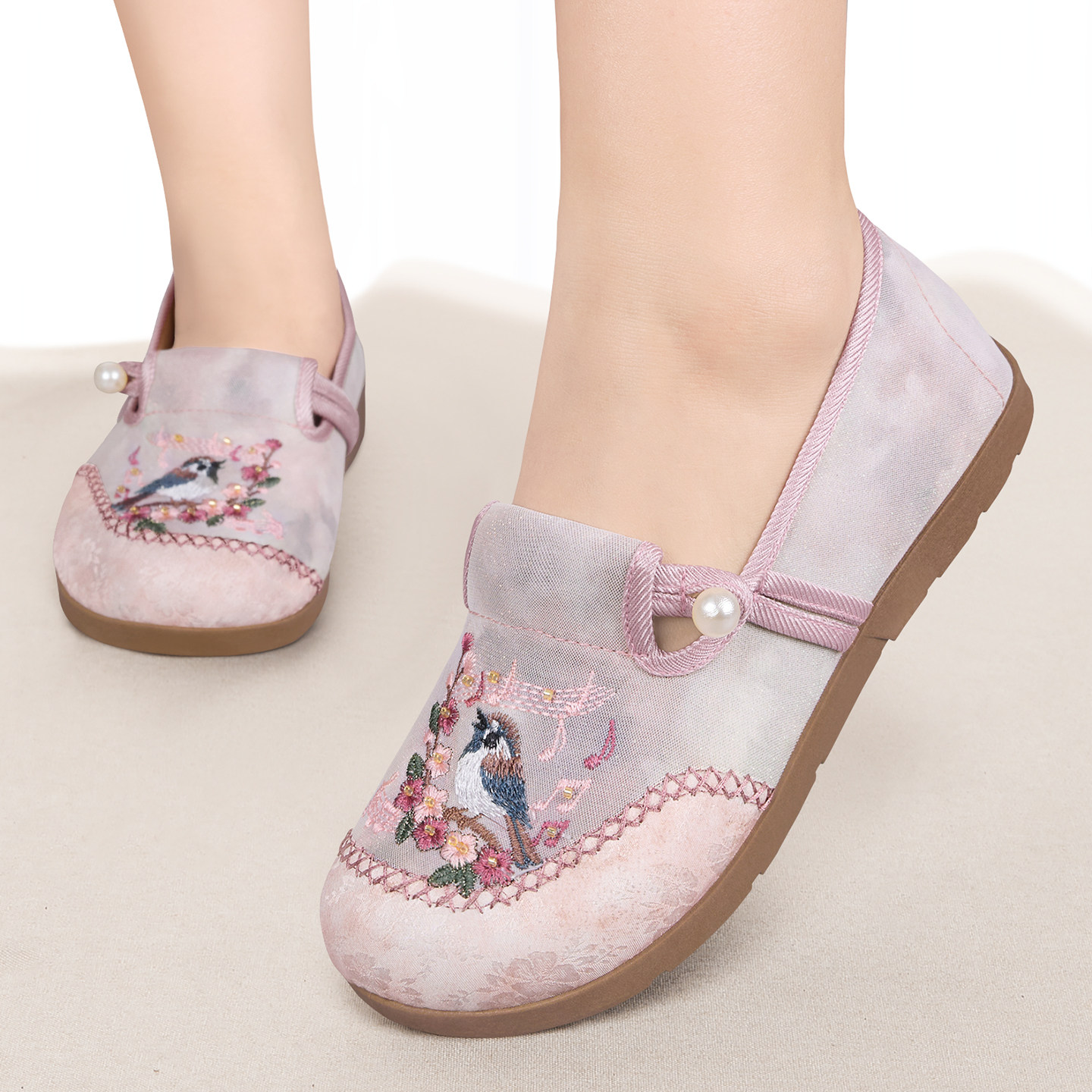 特价老北京布鞋女平底气质汉服古风浅口盘扣印花时尚妈妈鞋绣花鞋