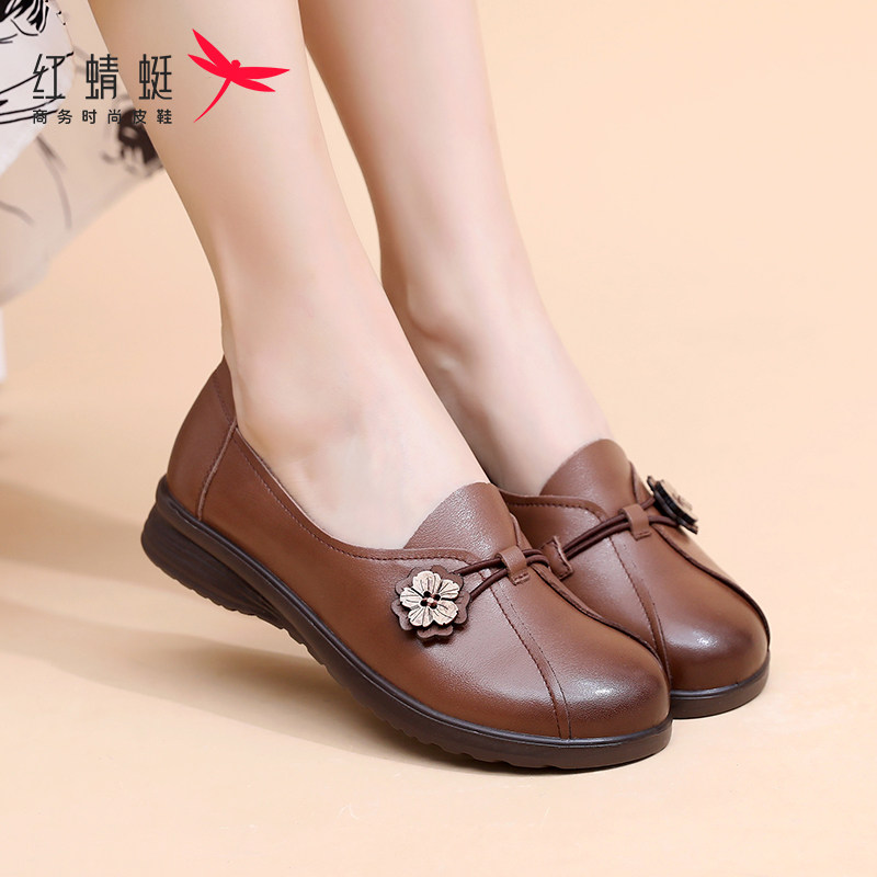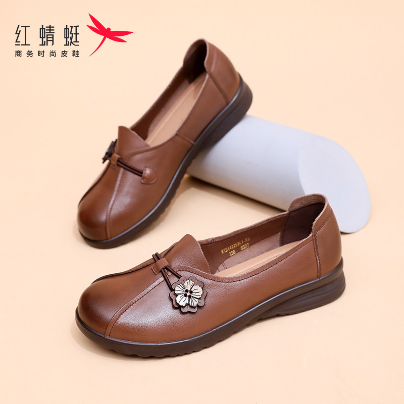 天猫红蜻蜓妈妈鞋女士单鞋2026新款平软底真皮一脚蹬中老年舒适不累脚