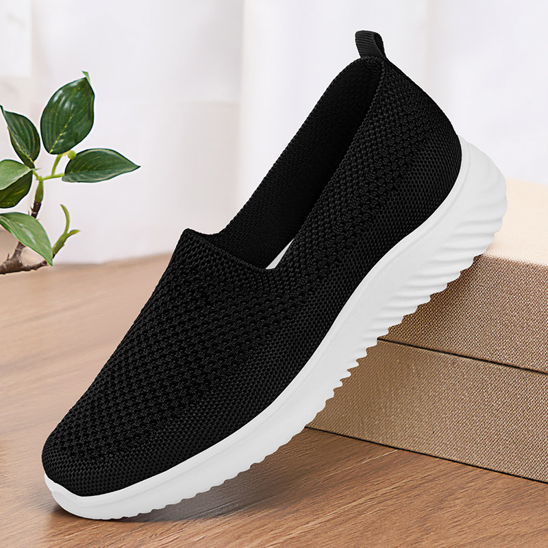 春夏老北京布鞋女飞织透气浅口妈妈鞋平底防滑中老年健步鞋女单鞋