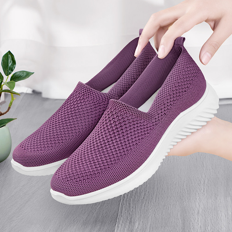 天春夏老北京布鞋女飞织透气浅口妈妈鞋平底防滑中老年健步鞋女单鞋