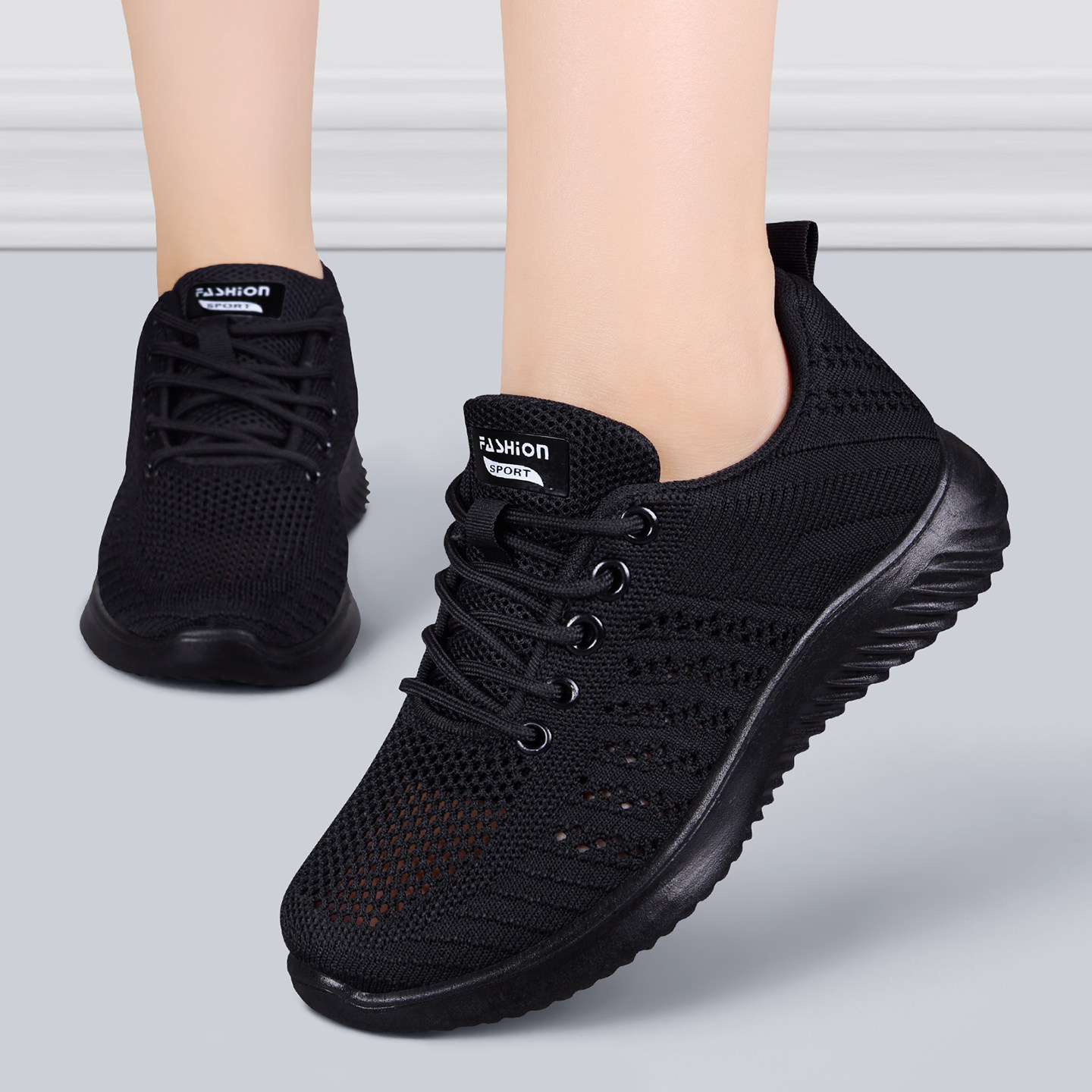 淘夏季新款透气飞织网鞋女舒适软底妈妈鞋平底老北京布鞋镂空网面鞋
