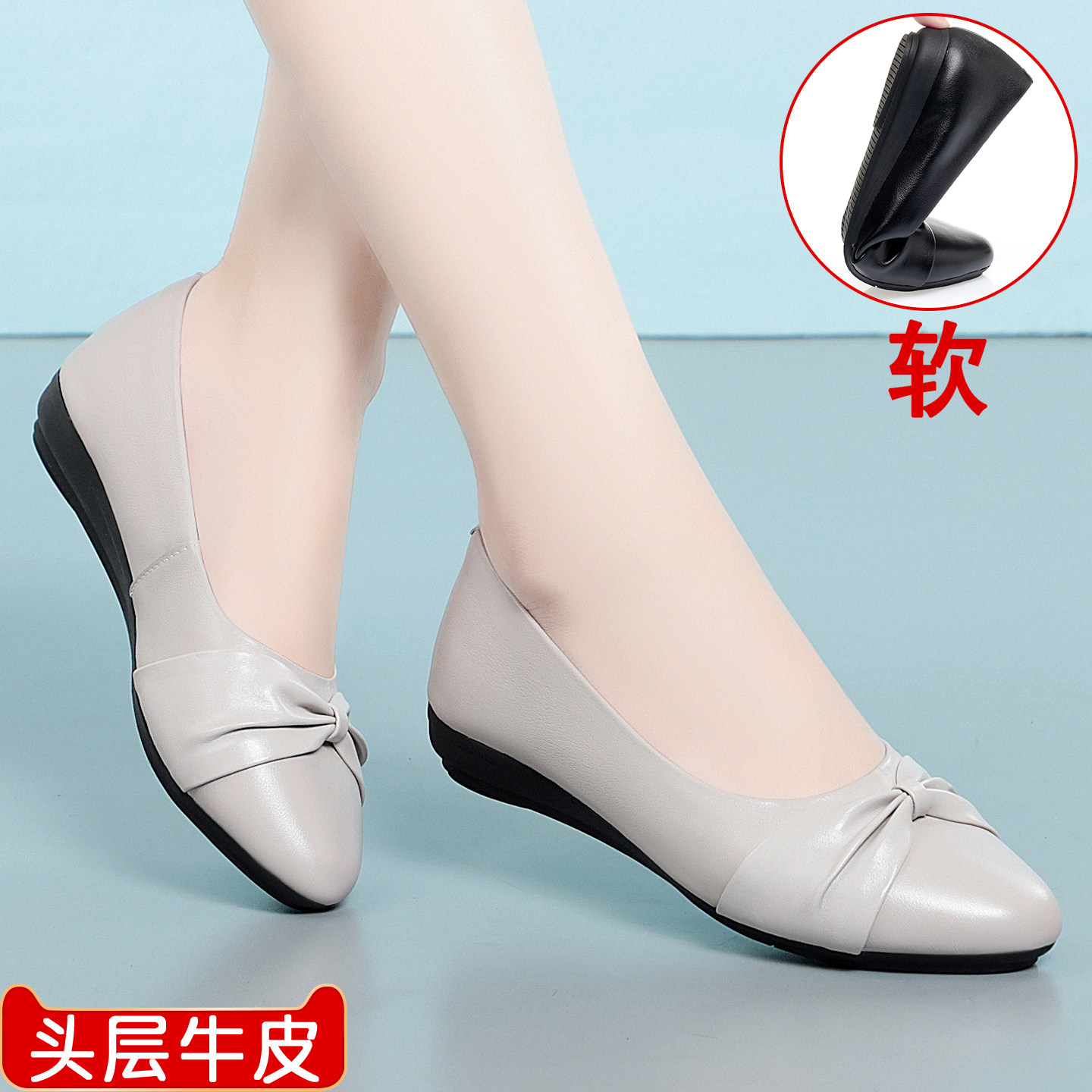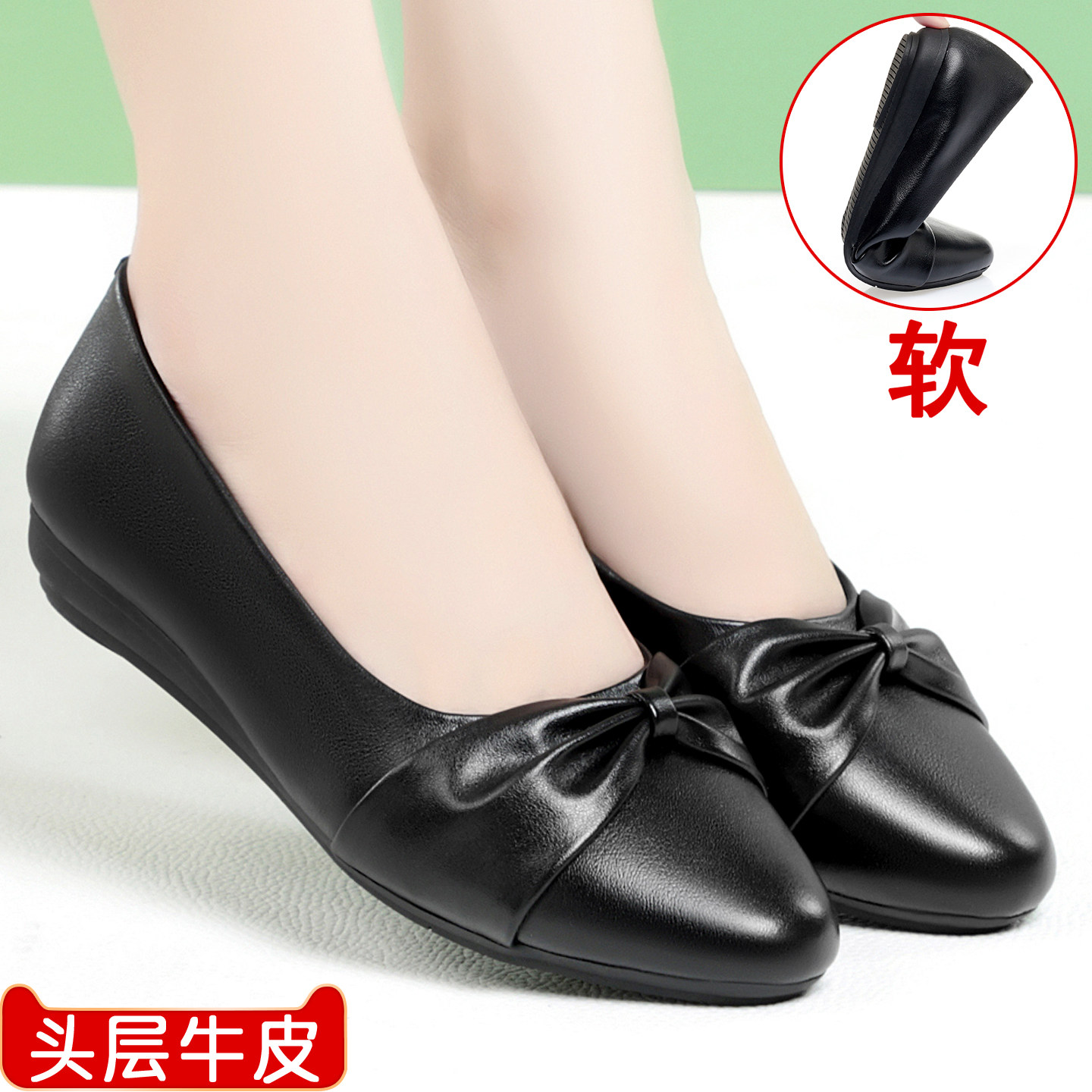 天猫妈妈鞋单鞋平跟软皮软底真皮女鞋中老年舒适轻便防滑平底女士皮鞋