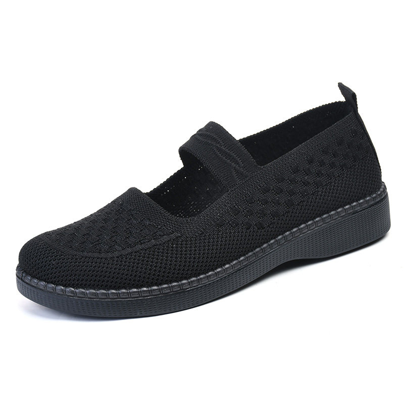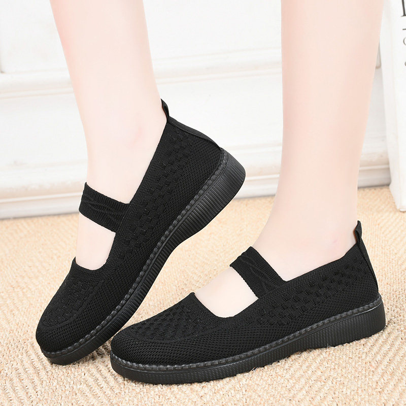 春夏老北京布鞋女飞织透气浅口妈妈鞋平底防滑中老年健步鞋女单鞋
