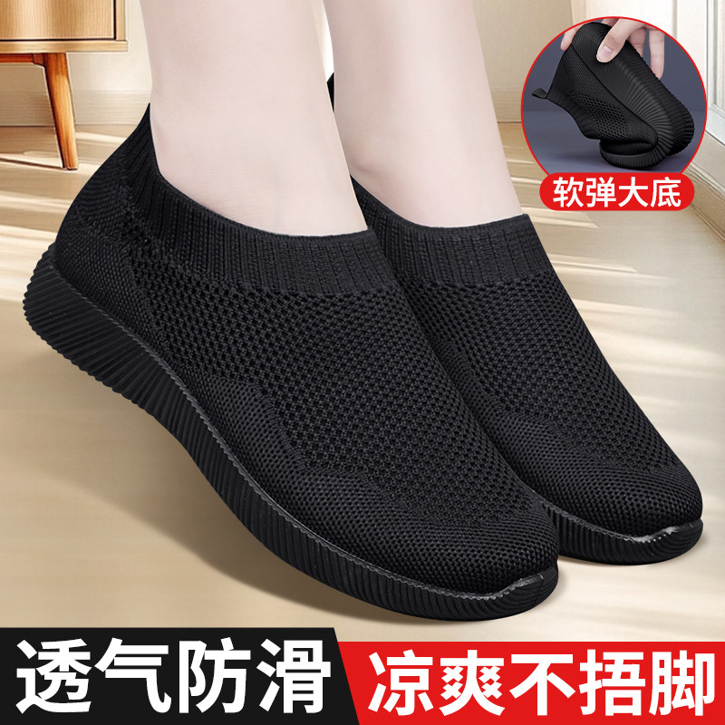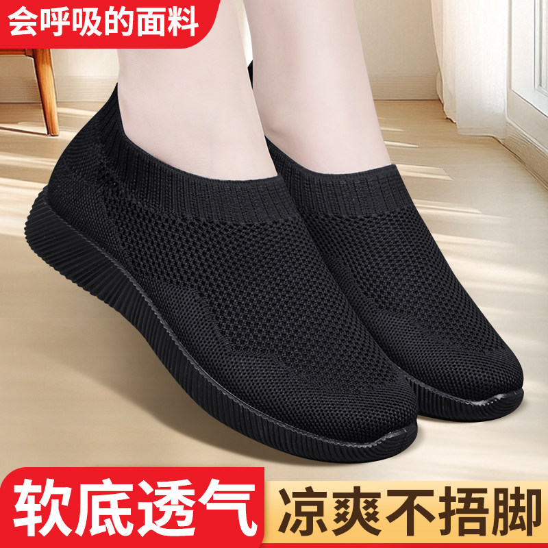 天猫老北京布鞋飞织网面一脚蹬女鞋软底防滑透气妈妈鞋轻便舒适休闲鞋