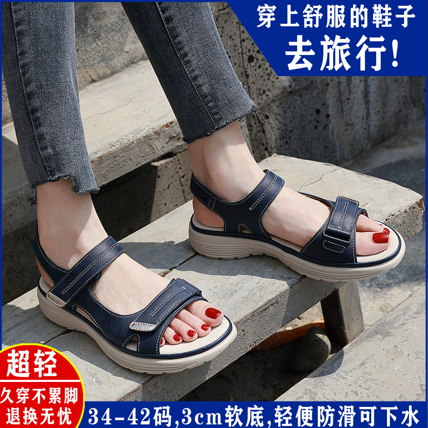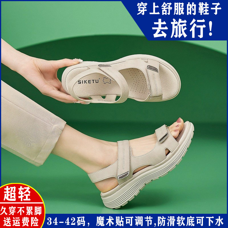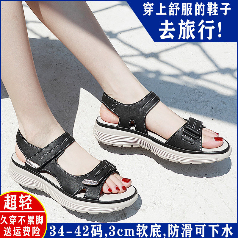 淘宝厚底运动凉鞋女夏新款妈妈旅游软底不累脚轻便防滑休闲孕妇女鞋34