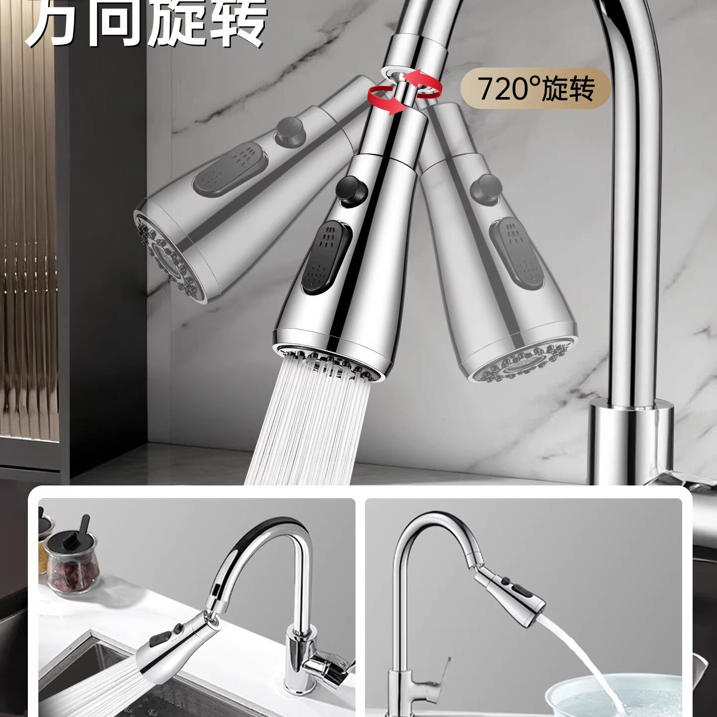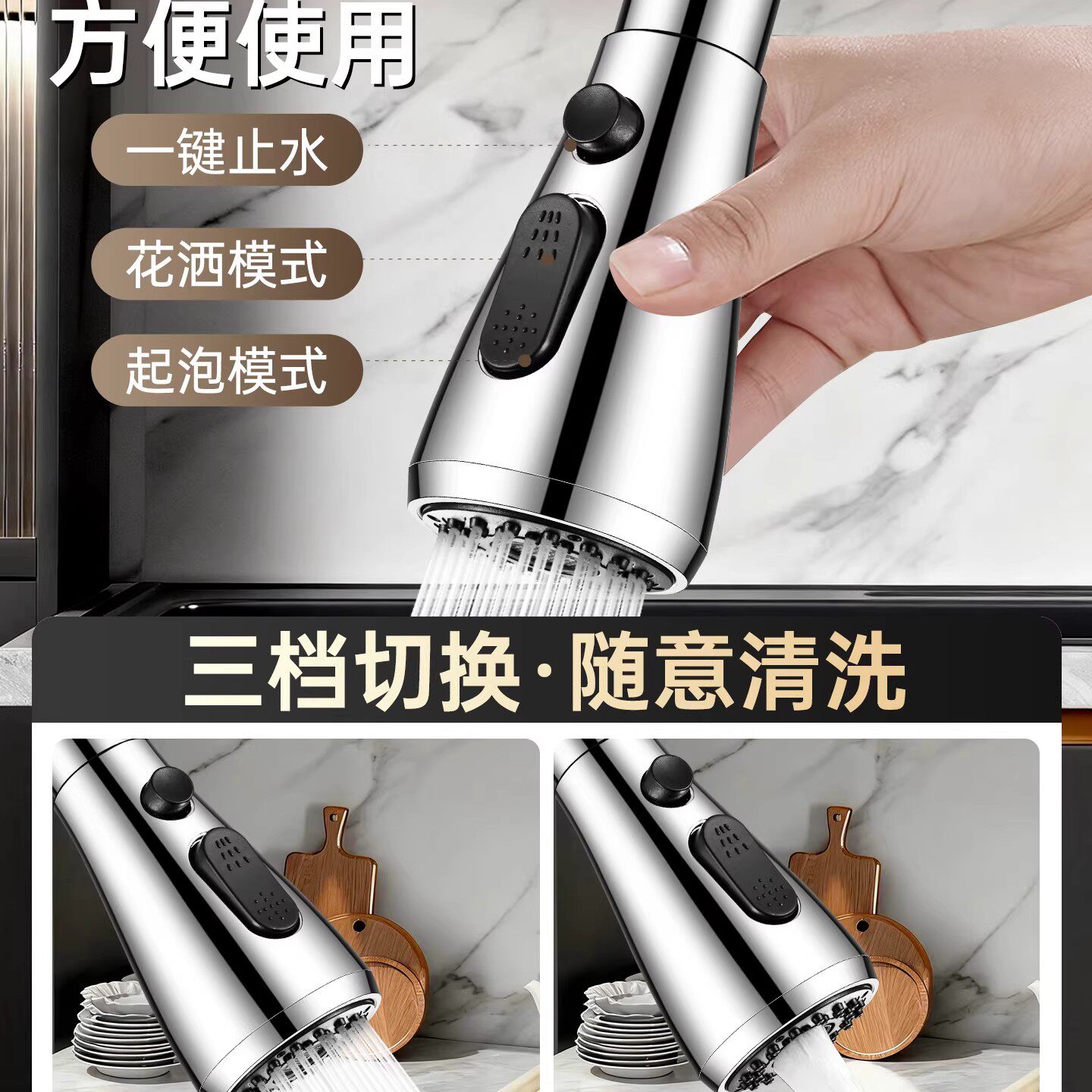 淘洗菜盆池水龙头增压防溅头起泡器水槽延伸三档万向旋转过滤器喷头