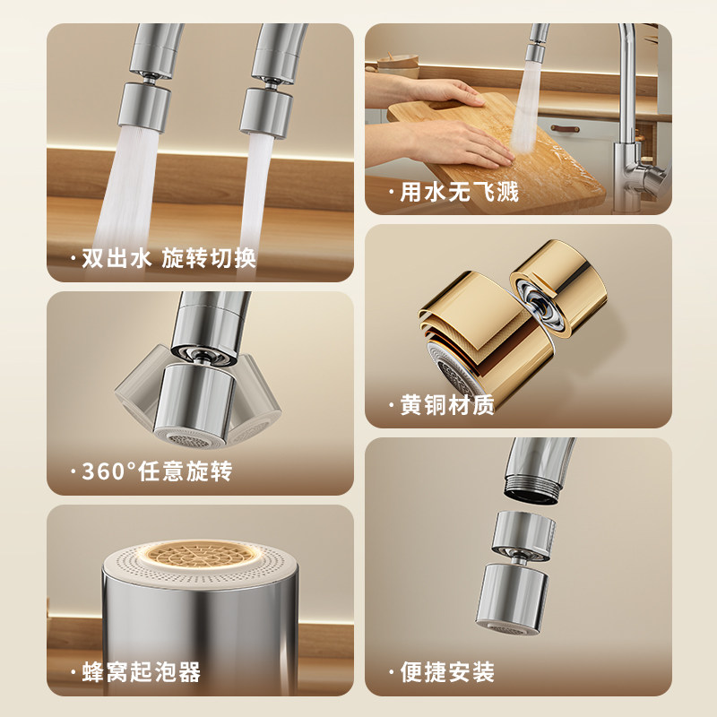 天厨房水龙头延伸器防溅水神器万向接头万向可旋转起泡器过滤出水嘴