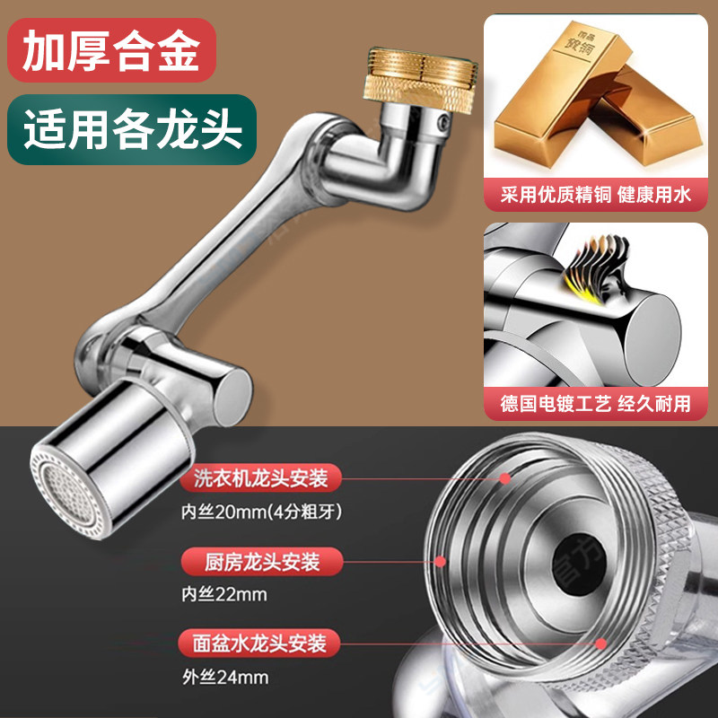 天机械臂万向水龙头可旋转出水嘴延伸卫生间起泡器接头防溅神器摇臂