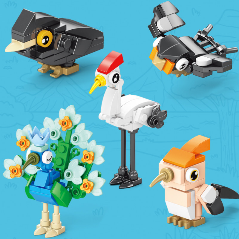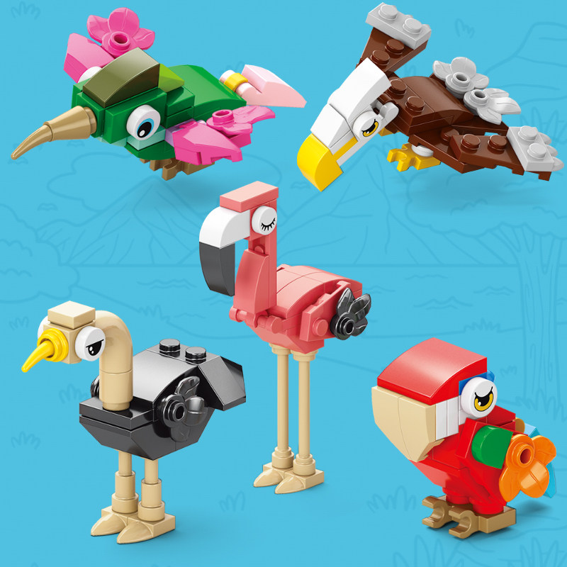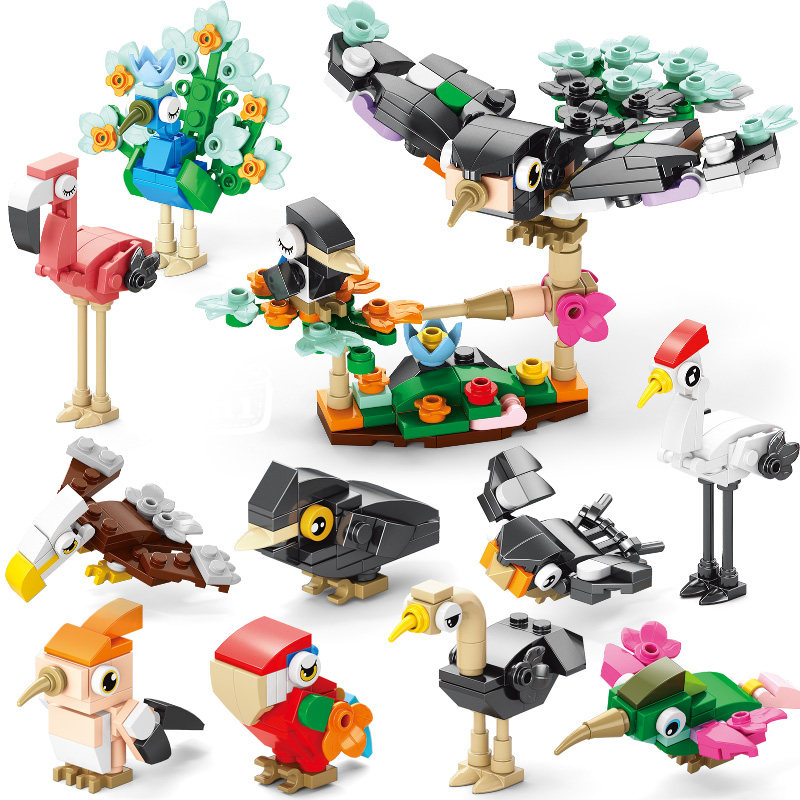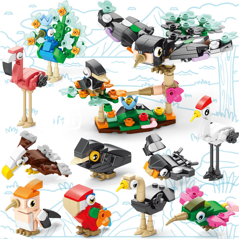 淘方橙积木儿童益智拼装鸟类模型玩具男孩拼图海洋动物鲸鱼女孩礼物