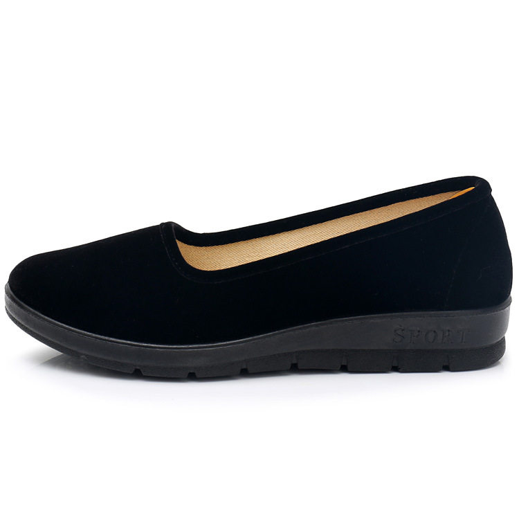 淘老北京布鞋绒面春聚氨酯全黑酒店工作耐磨防滑跳舞妈妈平底单鞋女