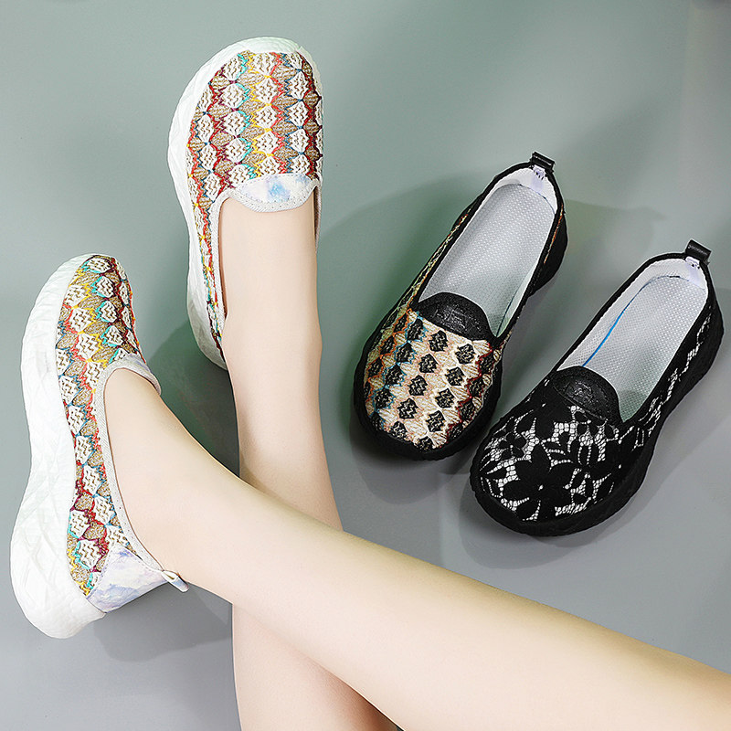 老北京布鞋女单鞋春秋新款运动鞋网面透气休闲鞋厚底健步鞋妈妈鞋