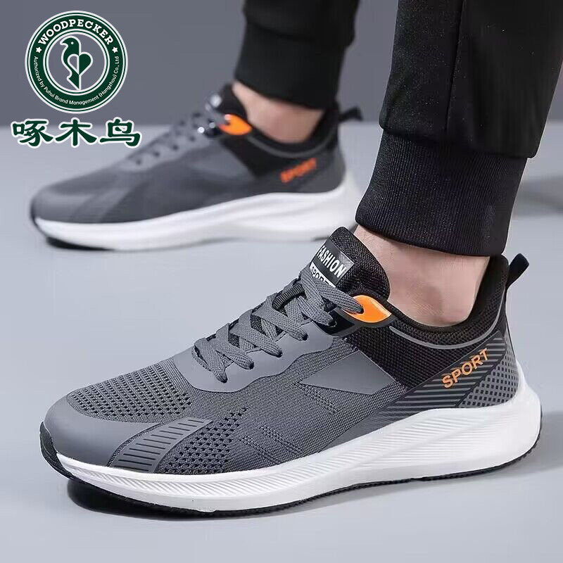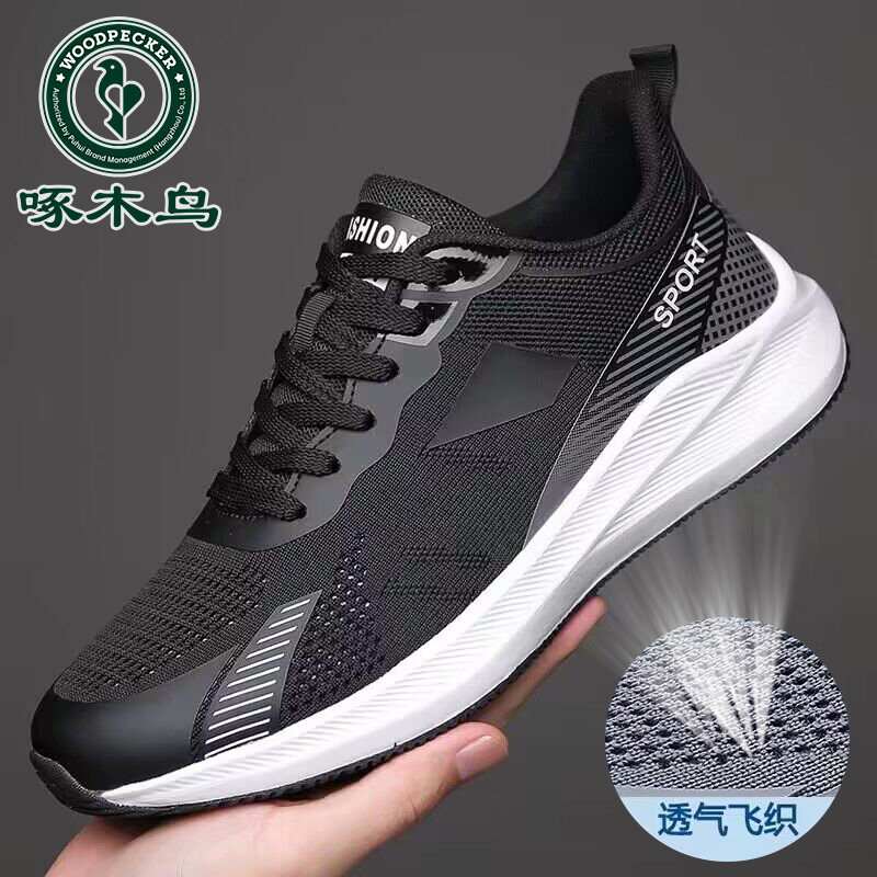 淘宝啄木鸟运动鞋男新款夏季休闲系带透气飞织网面鞋子大码减震跑步鞋