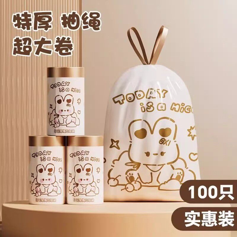 淘宝兔子抽绳式印花垃圾袋家用加厚手提厨房宿舍学生提拉收口塑料袋