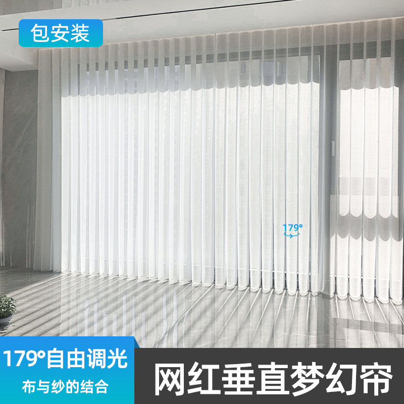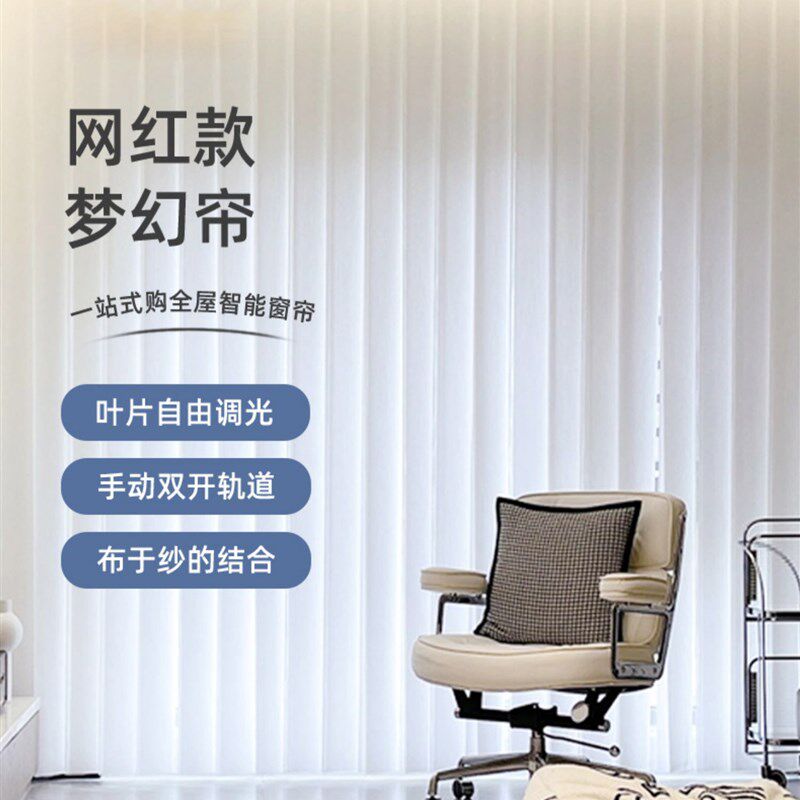 梦幻帘窗帘遮光新款客厅阳台卧室纱帘垂直竖百叶T电动窗帘遮阳手