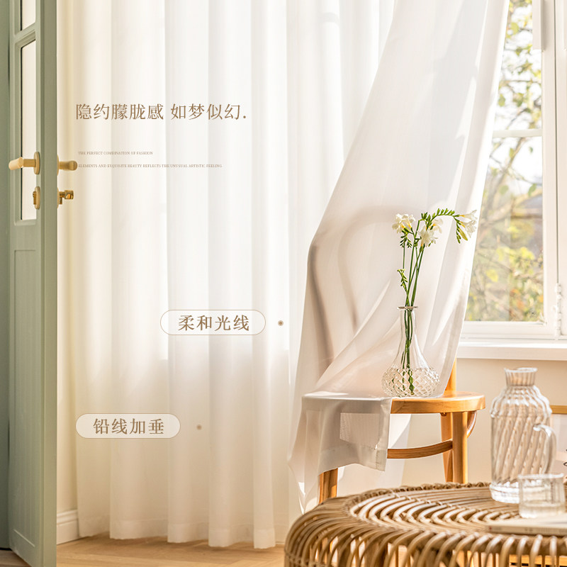 淘窗帘纱帘透光不透l人阳台卧室飘窗免打孔防勾丝客厅隔断梦幻白纱
