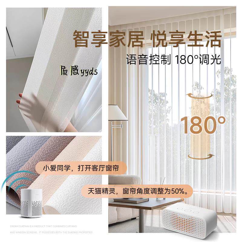 2024年新款电动梦幻帘,融合智能科技与美学设计,专为现代客厅、阳台及落地窗打造。采用高品质竖百叶结构,兼具纱帘的轻盈通透与遮光帘的实用功能,可自由调节光线明暗,营造舒适氛围。支持手机APP、语音控制及遥控操作,一键开合,静音运行,便捷省心。垂直帘片设计简约流畅,适配多种装修风格,透光不透影,保护隐私的同时提升空间质感。电动驱动系统稳定耐用,安装简便,是智能家居的理想之选。无论是追求实用还是颜值,这款电动梦幻帘都能为您的家居生活增添科技感与优雅气息。