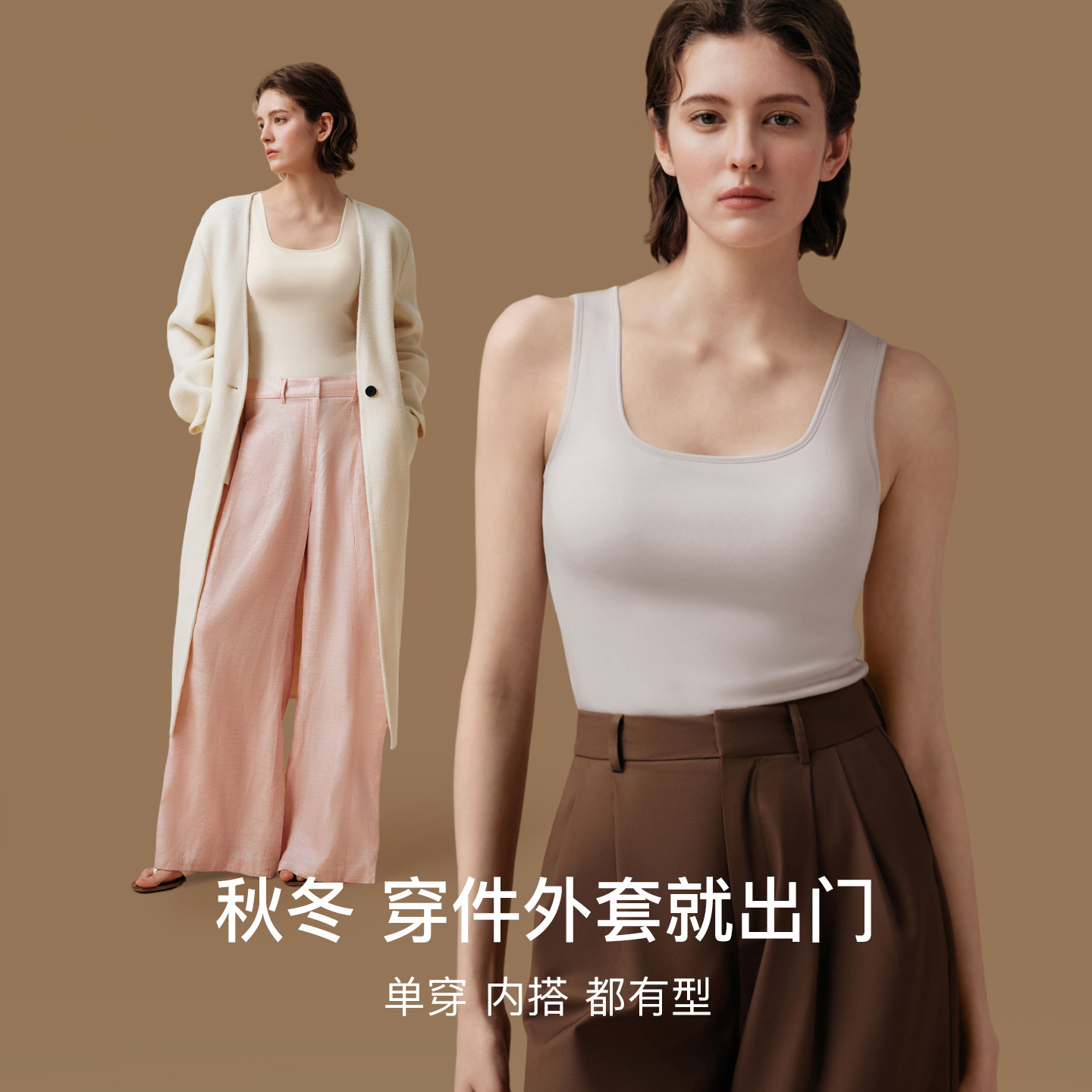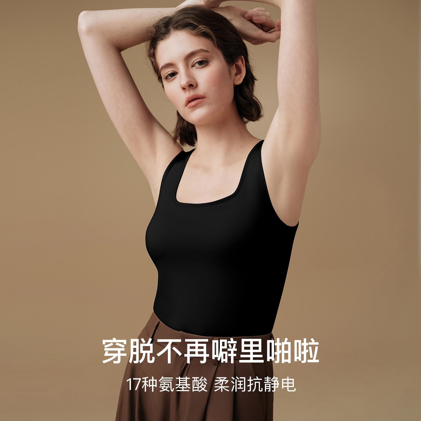 ubras保暖背心女款,采用含羊毛肌底面料,柔软亲肤,保暖性佳,适合秋冬季节贴身穿着。无痕设计贴合身形,外穿内搭皆宜,搭配外衣不显臃肿。加绒内里提升保暖效果,同时保持轻盈舒适,穿着无束缚感。精细剪裁搭配可调节肩带,满足不同体型需求,贴合胸型更自然。背心式剪裁简约大方,可搭配毛衣、外套或单穿,实用百搭。支持机洗,不易变形起球,打理便捷。无论是日常通勤、居家休闲还是户外活动,都能提供温暖舒适的穿着体验,是现代女性秋冬必备的贴心打底单品。