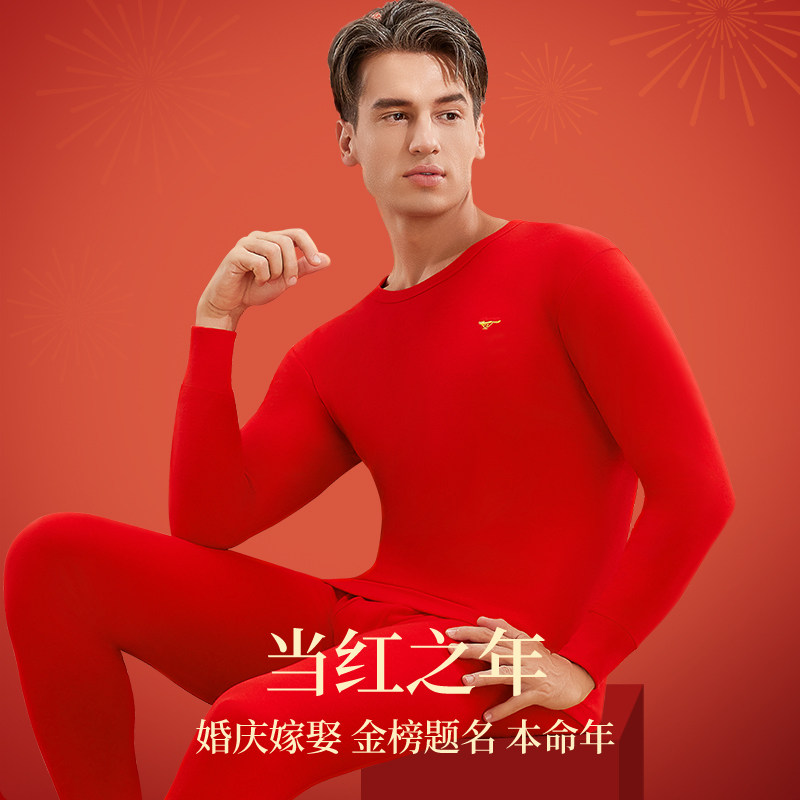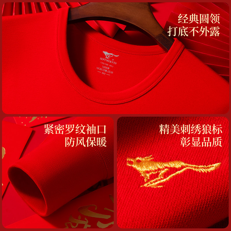 天猫七匹狼男士保暖内衣套装红色结婚秋衣秋裤礼盒2026马年本命年衣服