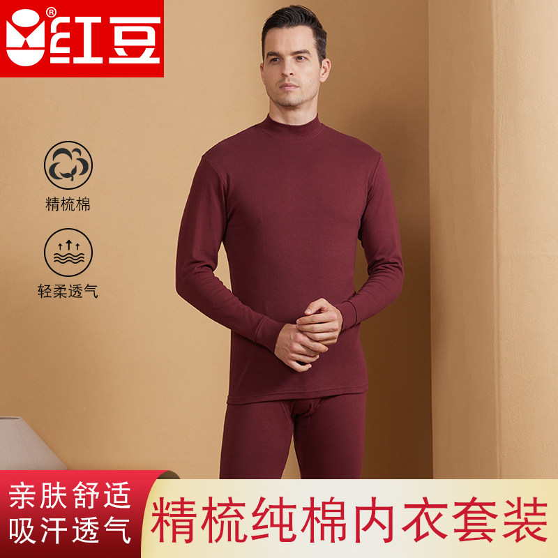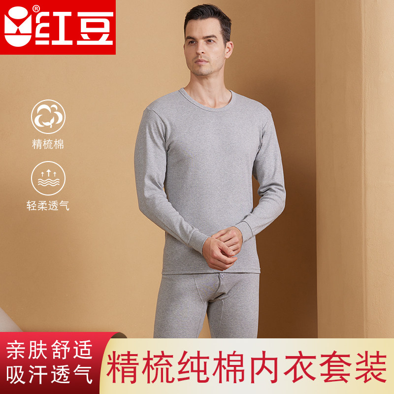 红豆居家男士纯棉抑菌保暖内衣青年打底棉毛衫秋衣秋裤套装秋冬季