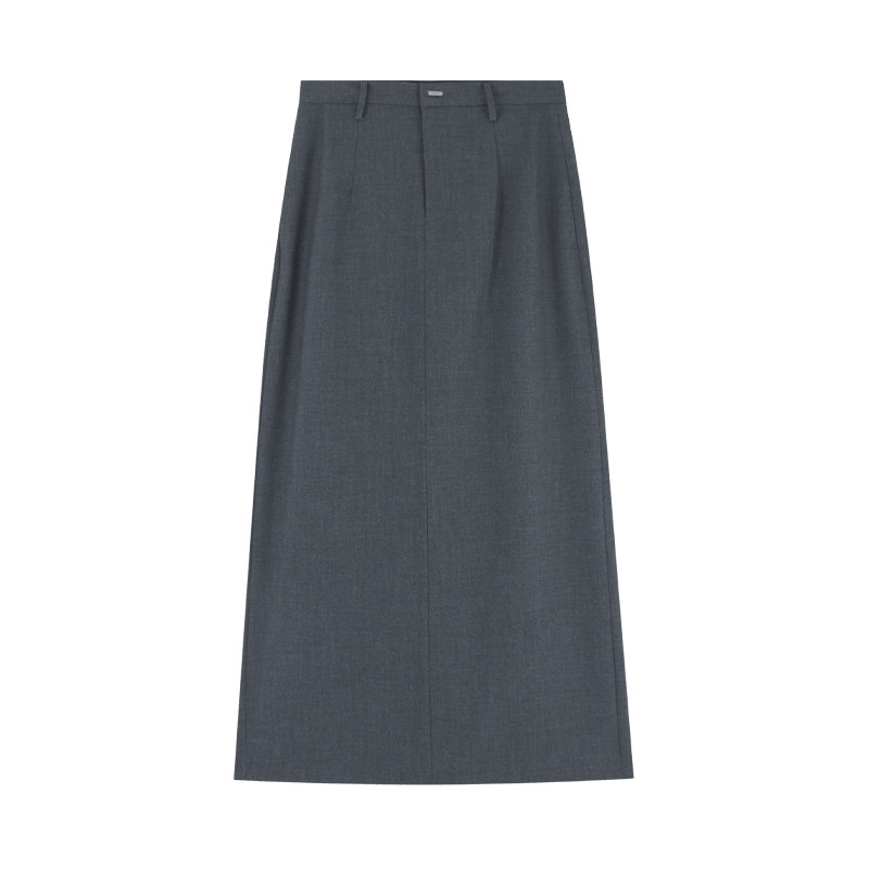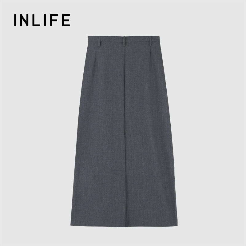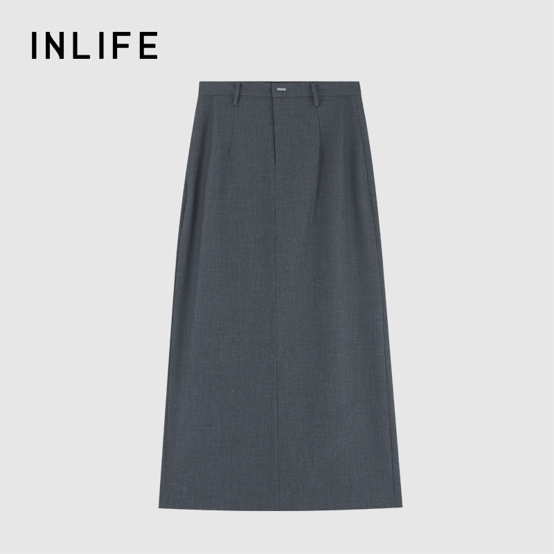 天猫伊纳芙高级中长款灰色西装半身裙女春季新款气质通勤高腰直筒裙子