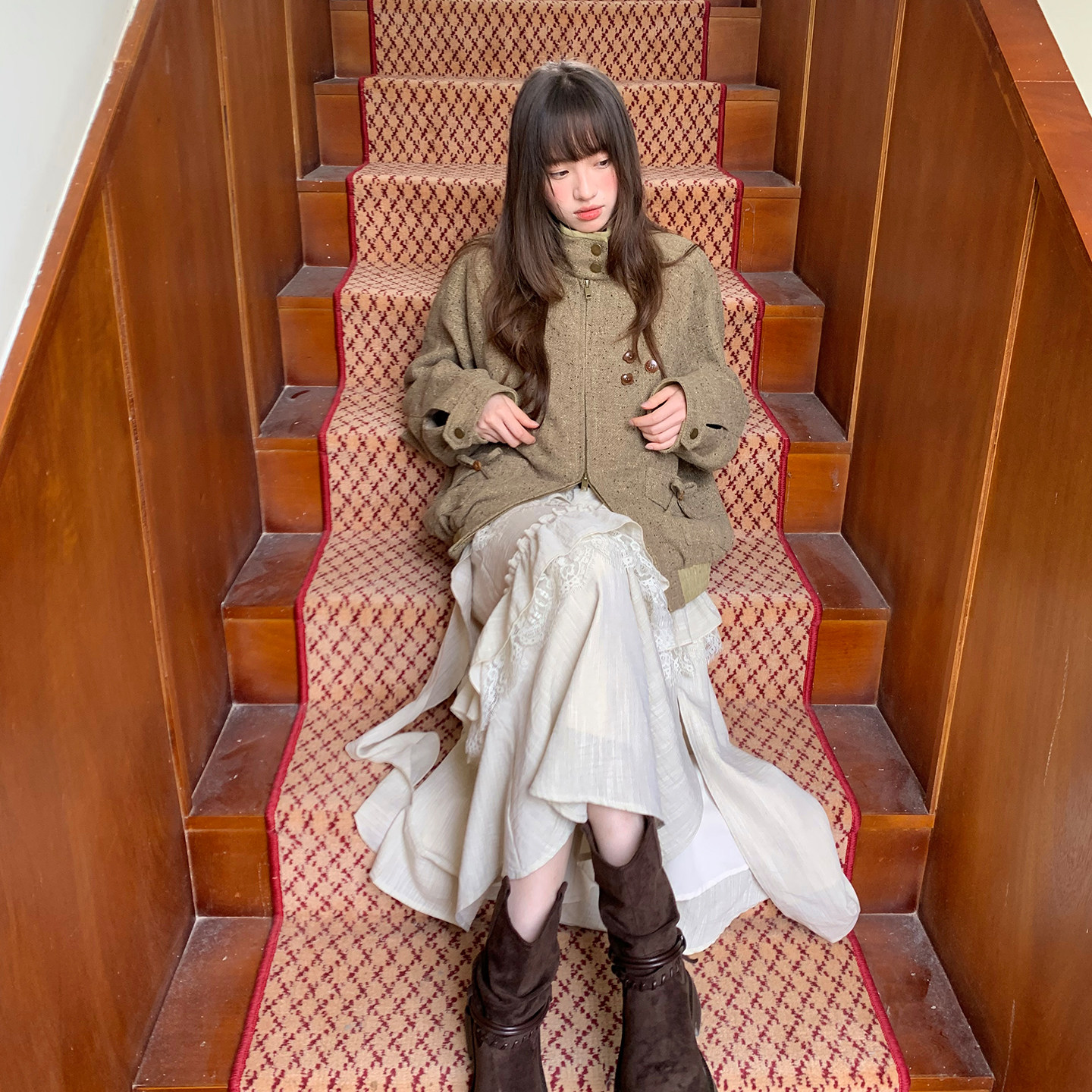 尺尺间Lsland  韩系不规则荷叶边半身裙女秋季新款设计感宽松长裙