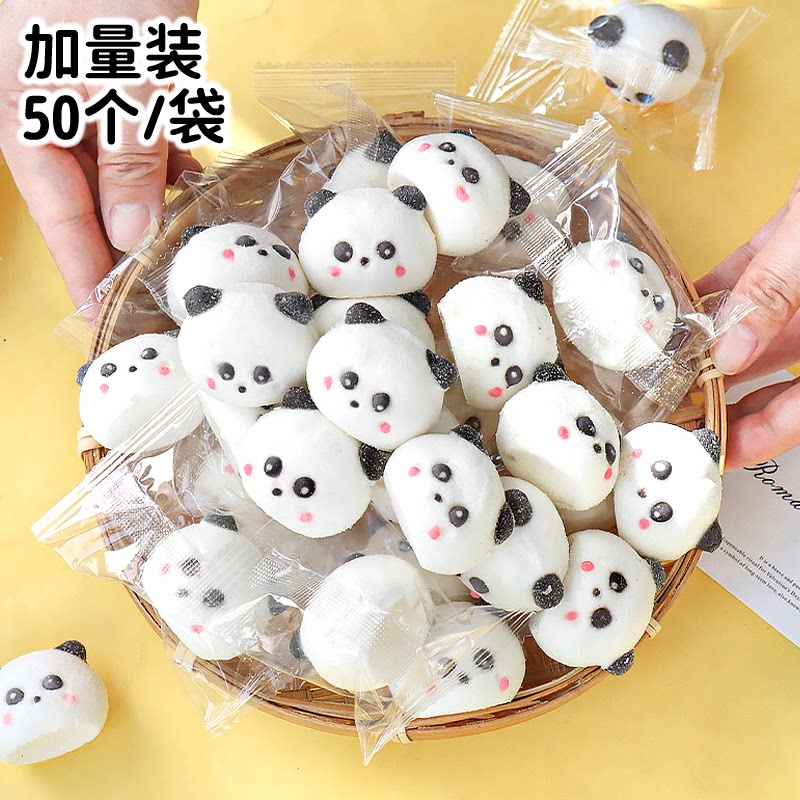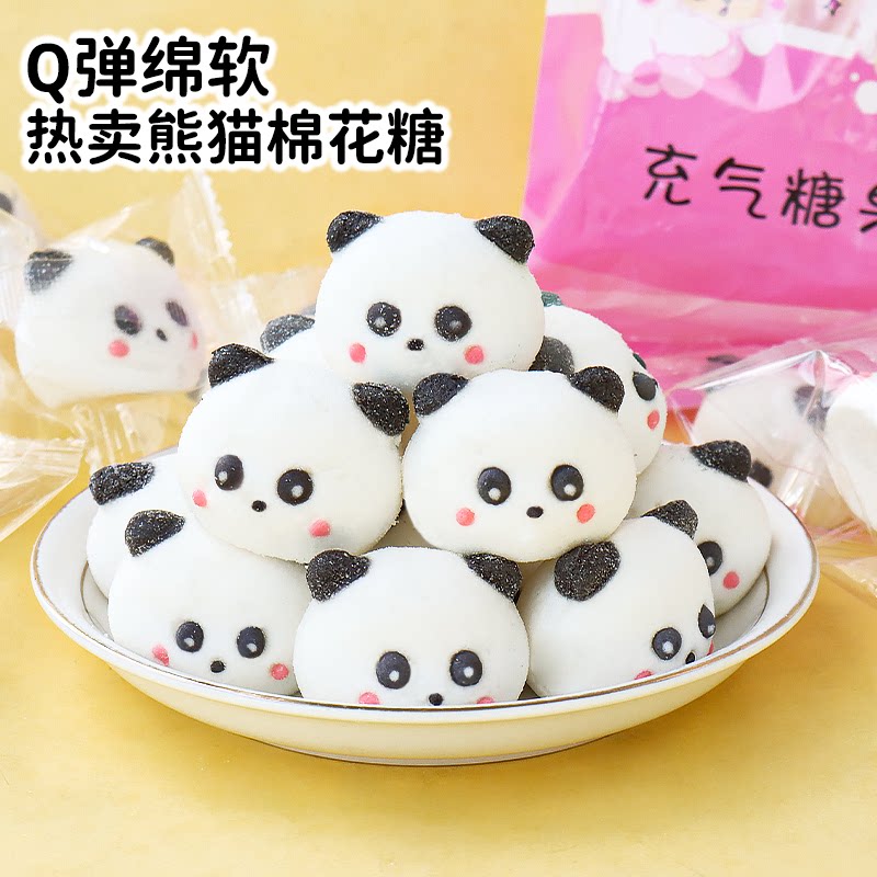 淘宝熊猫棉花糖蛋糕装饰卡通小动物糖果摆件网红新年甜品烘焙点缀商用