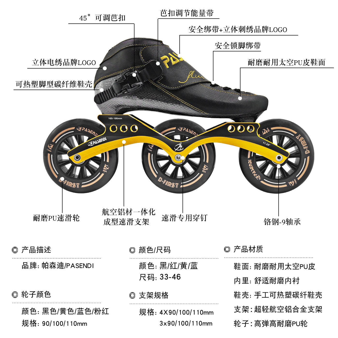 淘宝帕森迪专业碳纤热塑速滑鞋竞速鞋儿童成人三四轮溜冰鞋直排轮滑鞋