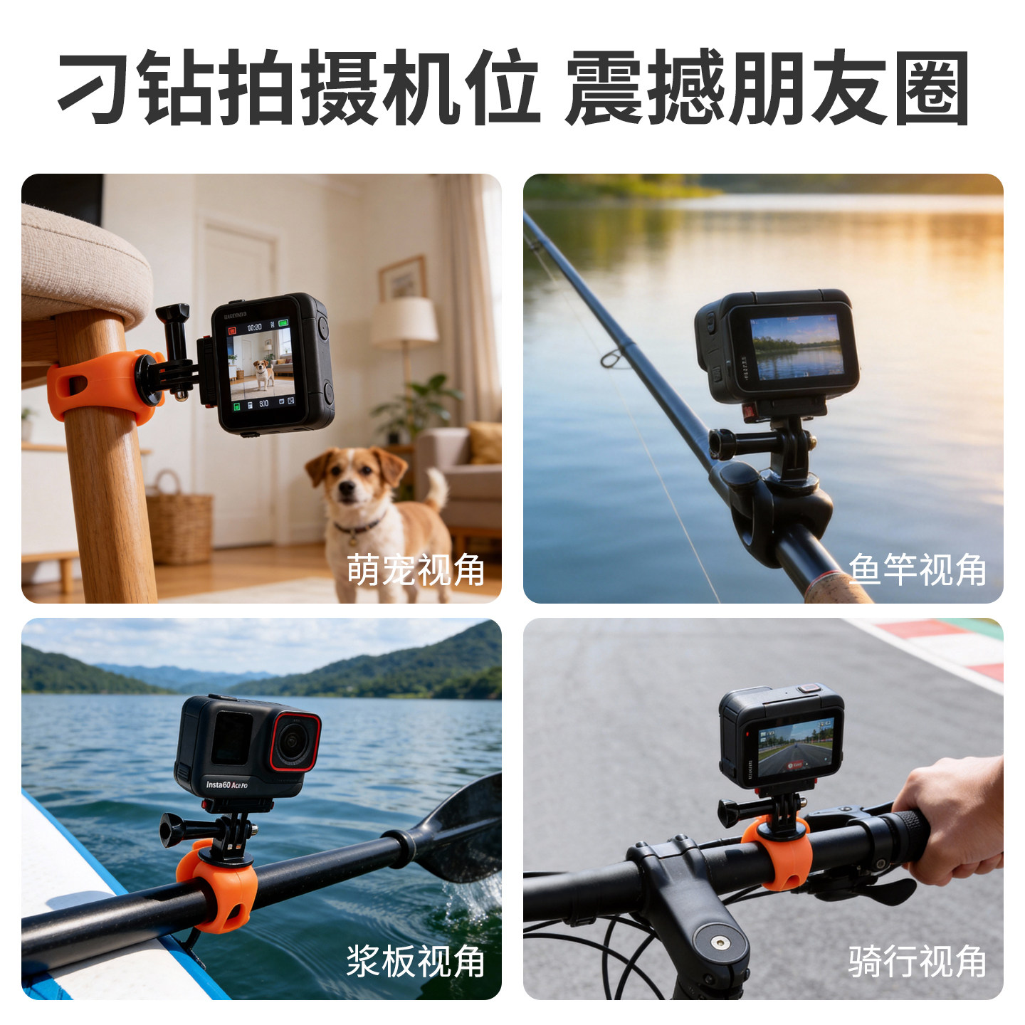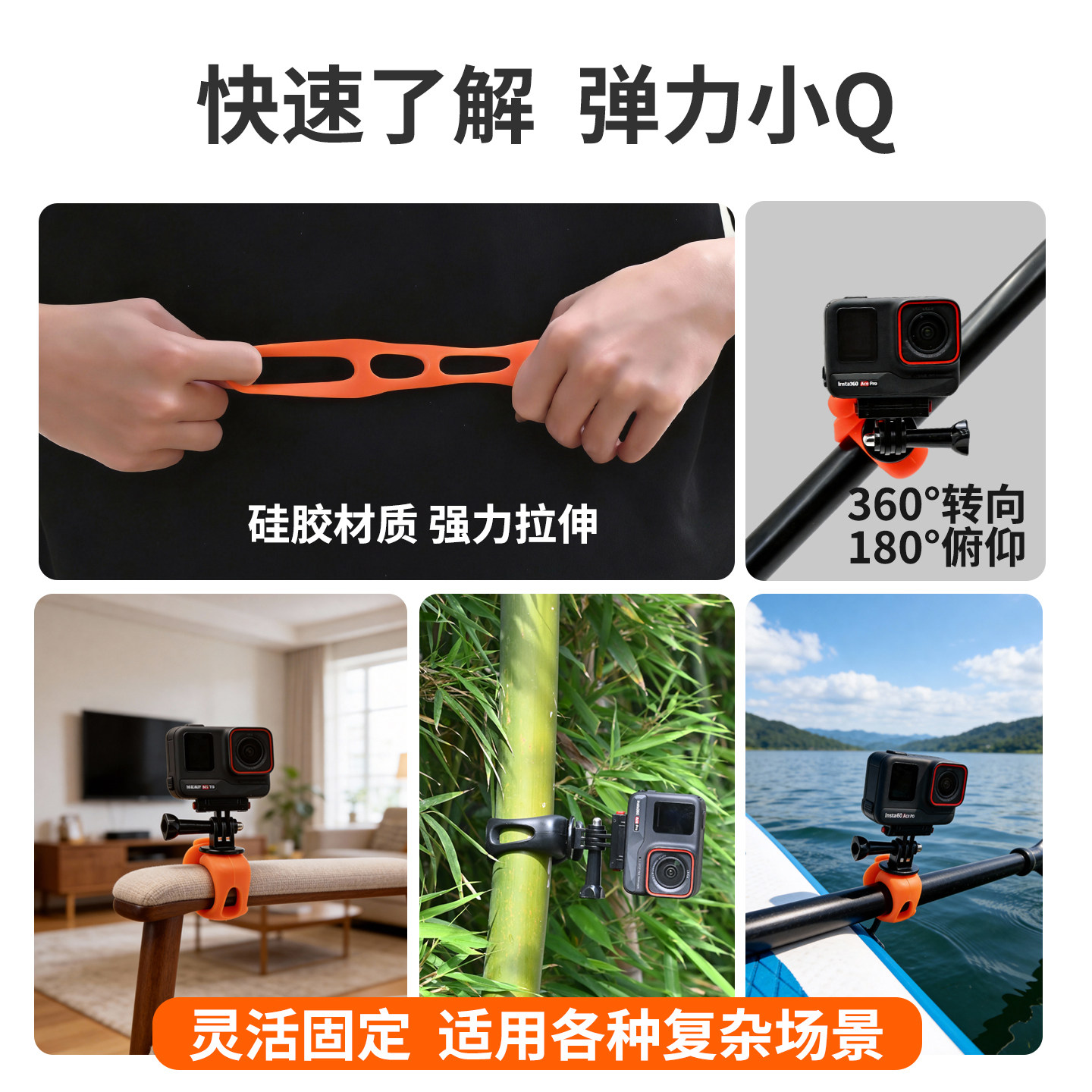 天猫弹力小q适用大疆action6/5pro/4/3运动相机骑行支架acepro2自行车支架gopro柔性支架多功能配件全景360
