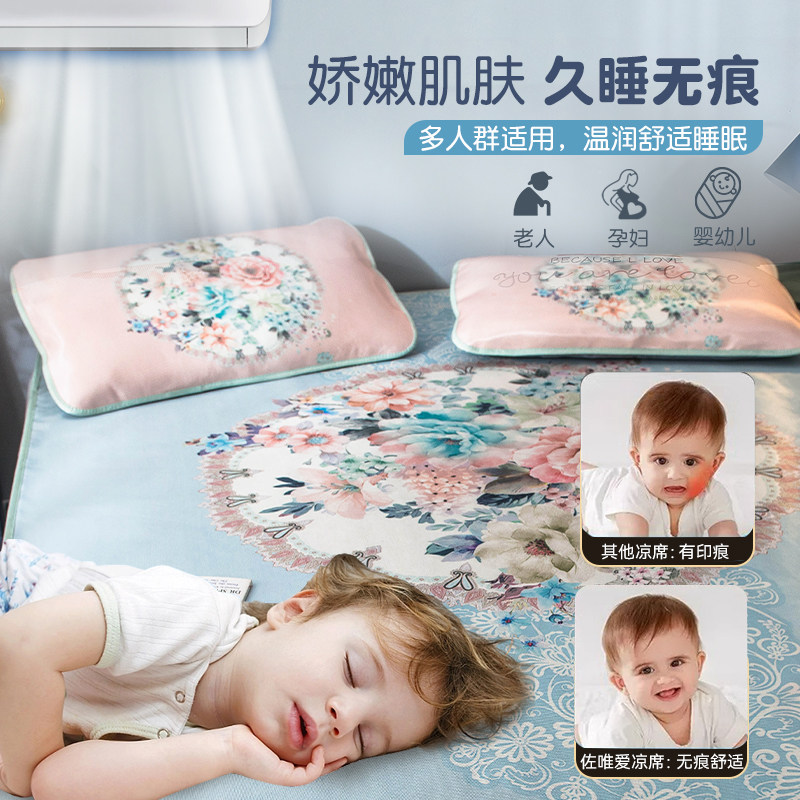 天水星儿童1000D冰丝席母婴A类抑菌凉感席软席子夏季可水洗凉席降温
