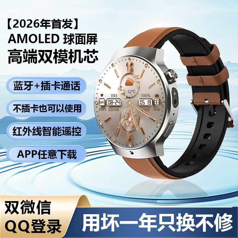 2026新款5G智能电话手表集通话、健康、运动与安全于一体,专为成人、初高中生及运动爱好者设计。支持独立插卡,畅享5G高速网络,可自由下载APP,实现微信、QQ等社交应用独立使用。搭载高精度传感器,实时监测心率、血氧饱和度,守护日常健康。内置高清摄像头,支持录像与录音功能,记录精彩瞬间。配备精准GPS定位与导航系统,出行更安心。多功能运动模式,满足跑步、骑行等需求。超长续航,IP68防水,坚固耐用。时尚男款设计,兼顾实用与潮流,是学生学习、运动与日常沟通的智能伴侣。