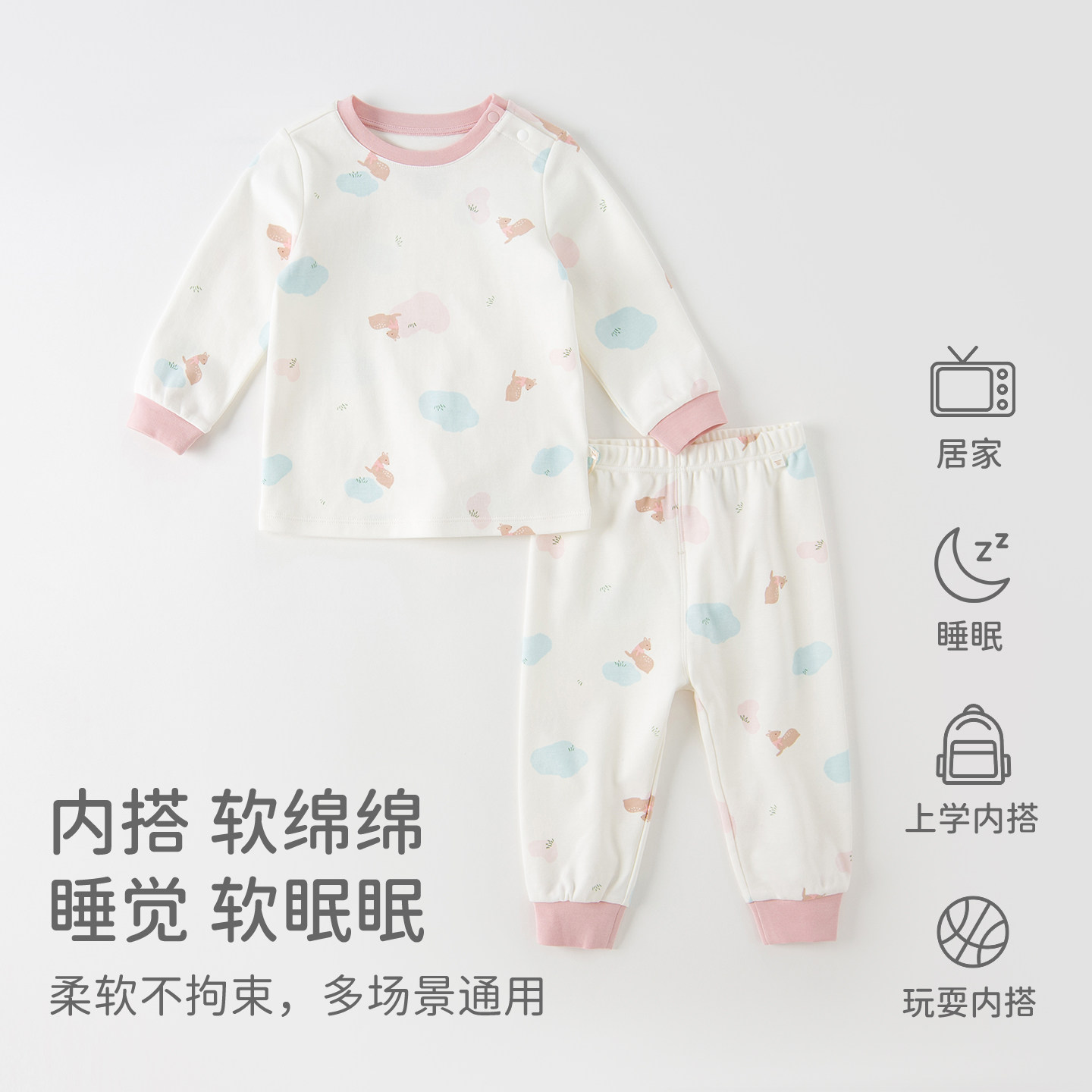 天巴拉巴拉儿童内衣套装秋冬加厚男童秋衣秋裤女童睡衣发热抗菌打底
