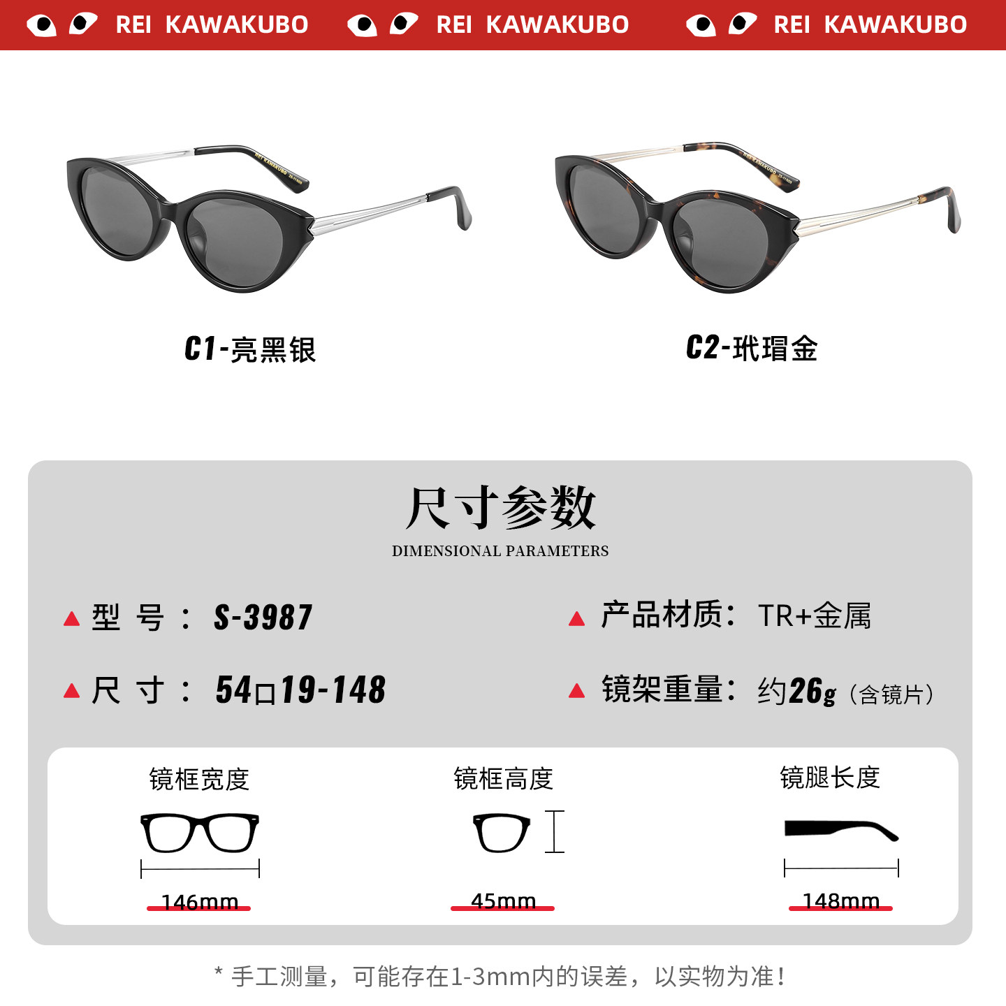 天猫川久保玲女款猫眼蝶形墨镜2026新款偏光遮阳太阳眼镜可配近视3987