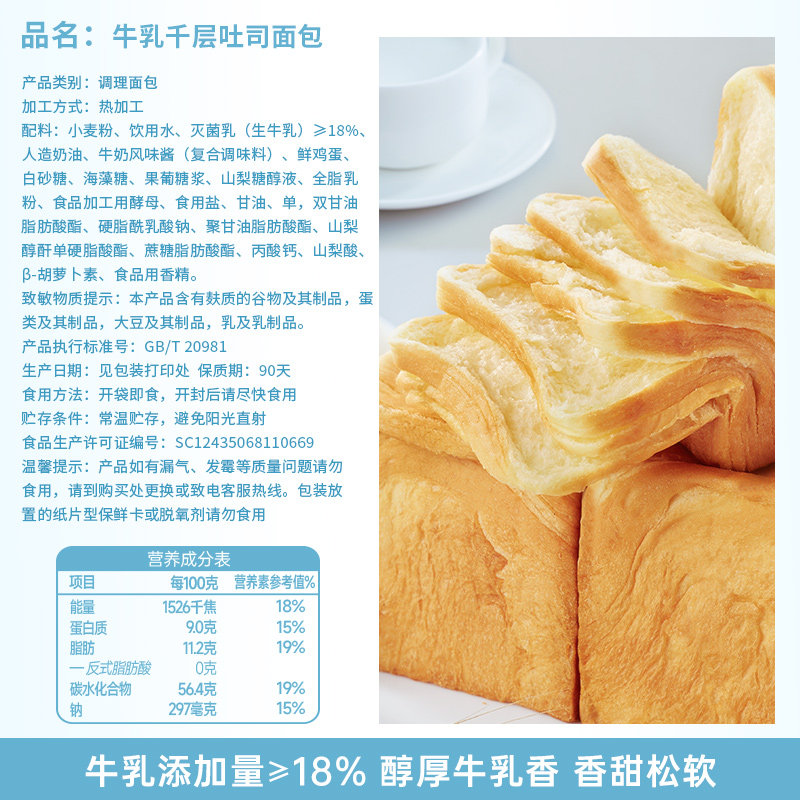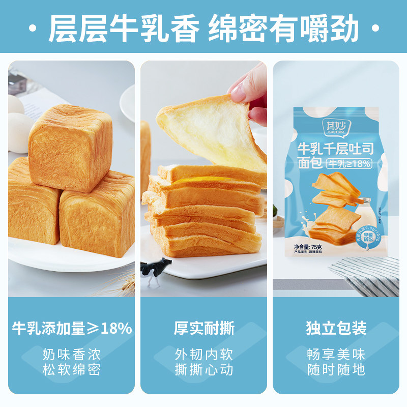 天猫牛乳千层吐司牛奶手撕面包整箱营养早餐代餐饱腹零食小吃休闲食品