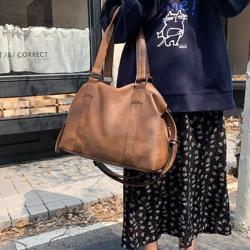 淘宝潮酷手提旅行包包女士2026新款韩版休闲托特包大容量斜挎包行李包