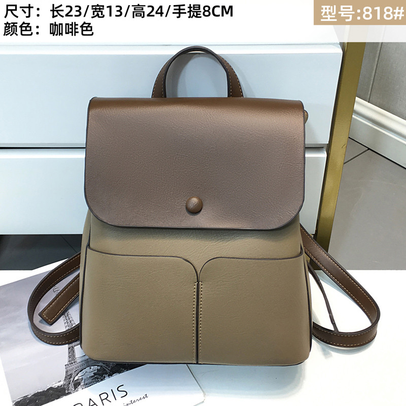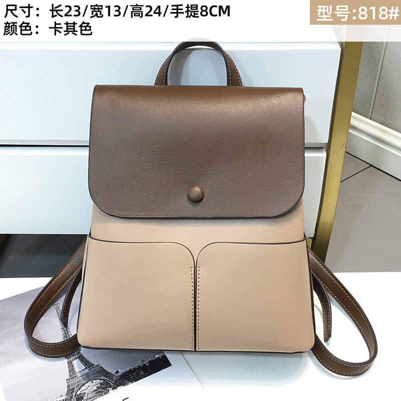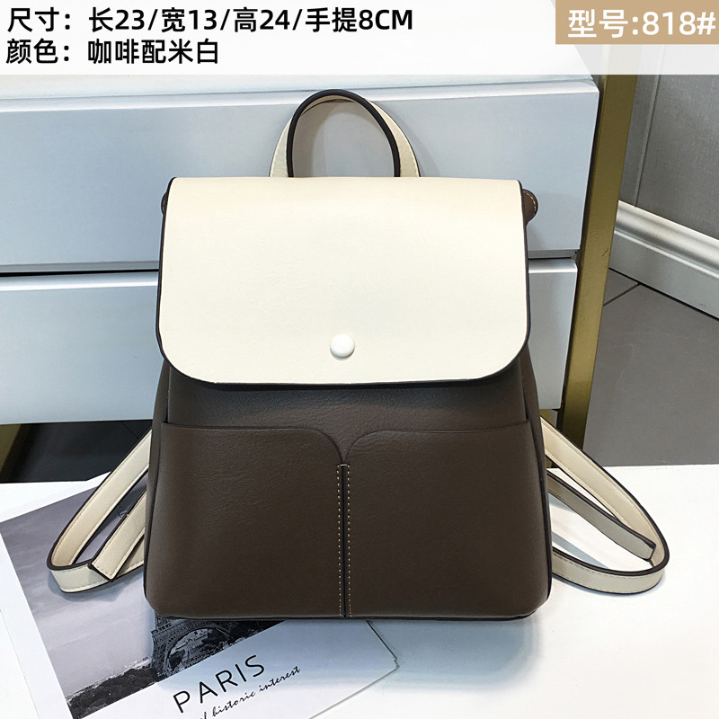 淘宝软皮质感双肩包女2024新款韩版百搭撞色休闲时尚外出包包旅行背包