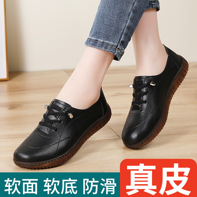 妈妈鞋牛筋底皮鞋夏款大码真皮不累脚防滑中老年软底软面舒适女鞋