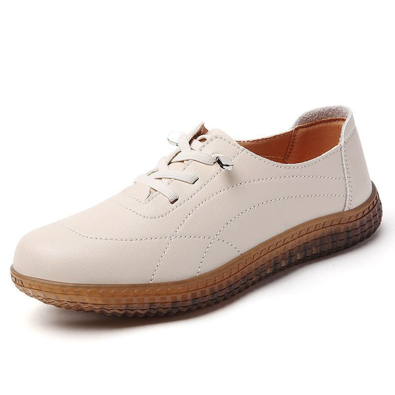 牛筋软底妈妈鞋春秋驾车皮鞋一脚蹬平底鞋子女士四季单鞋乐福鞋女