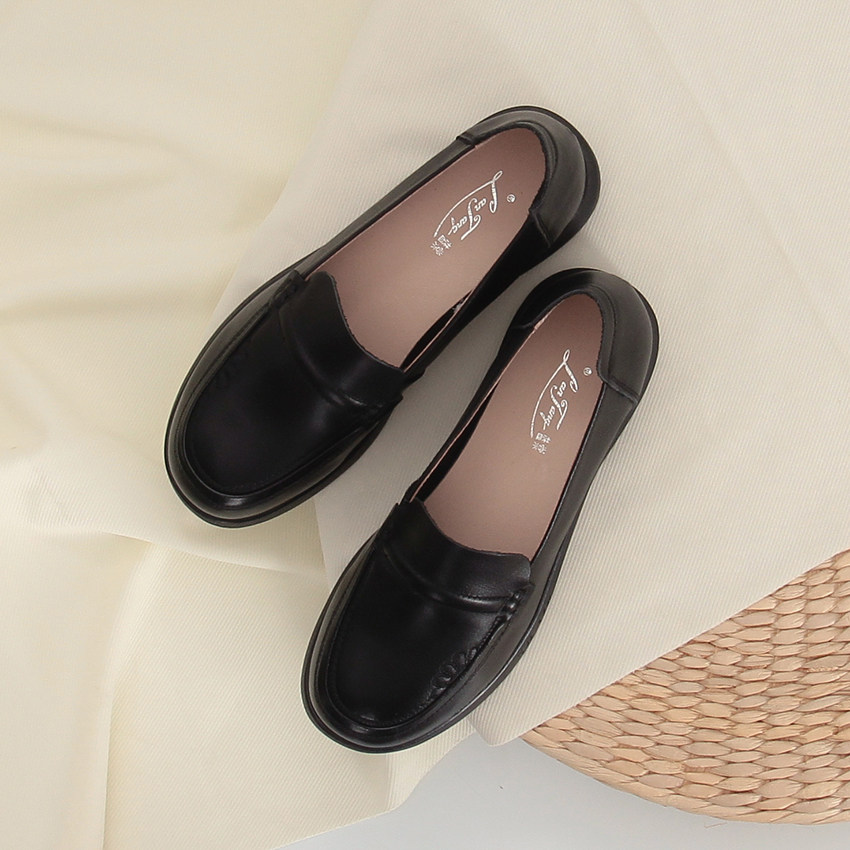 大东黑色小皮鞋女2026新款春季一脚蹬女鞋通勤皮鞋平底英伦乐福鞋