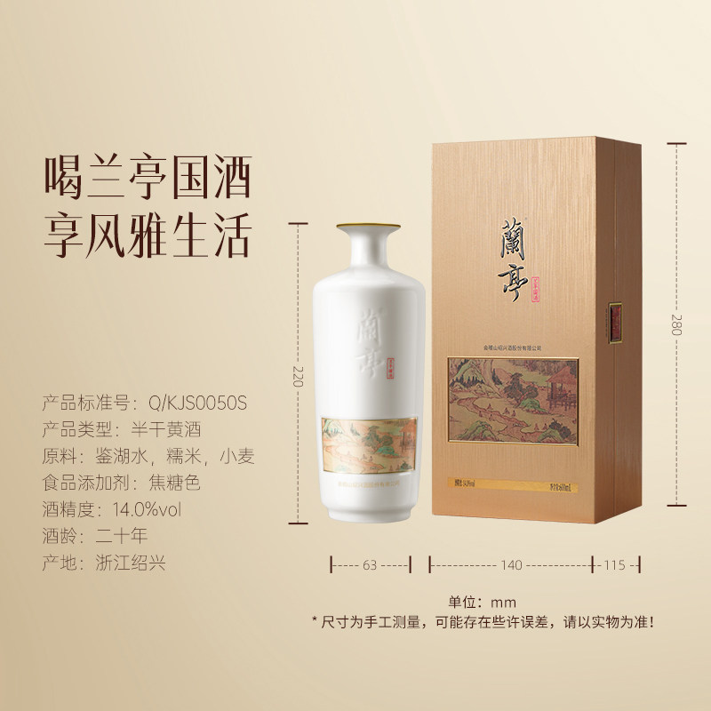 天猫会稽山官方正品 绍兴黄酒兰亭国酒600ml高档二十年礼盒绍兴花雕酒