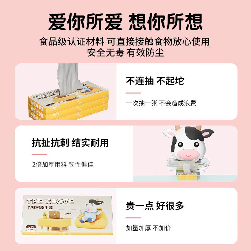天猫一次性TPE手套加厚耐用食品级专用餐饮防油防水抽取式通用手套