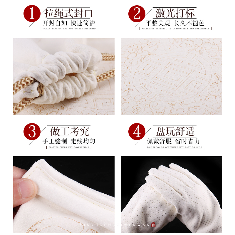 淘宝文玩手套麂皮盘玩手串鹿皮收纳袋子核桃金刚星月饰品保养抛光专用