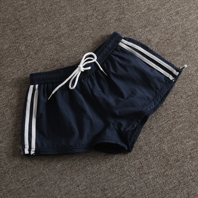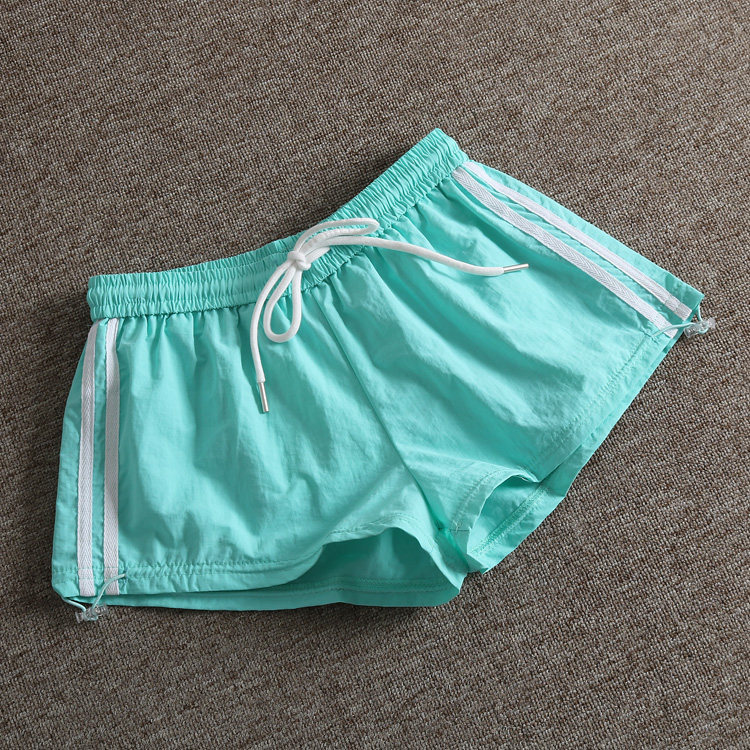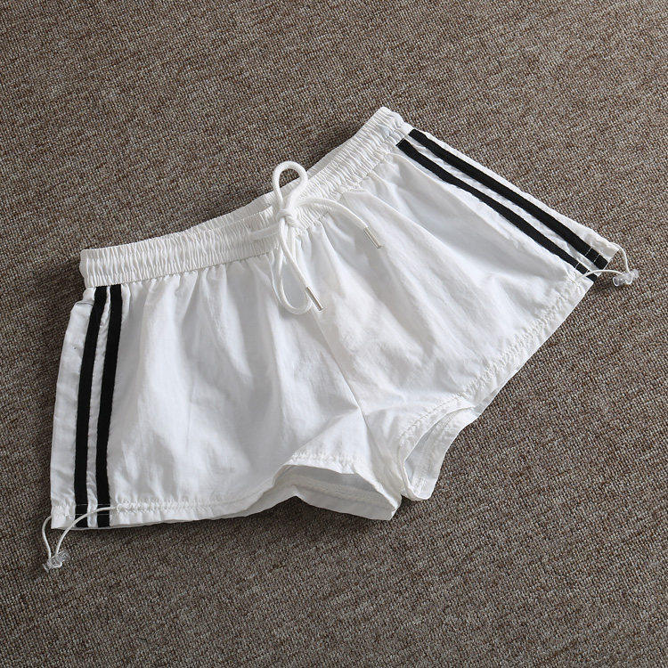 淘宝美式复古辣妹侧边拼色性感抽绳松紧腰运动健身速干短裤女沙滩热裤