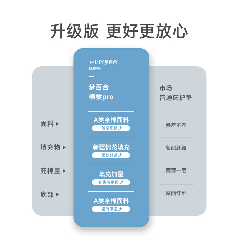 梦百合新疆棉花床护垫,采用100%新疆长绒棉填充与纯棉面料,里外全棉设计,亲肤透气,柔软舒适。优质棉花蓬松度高,回弹性好,有效承托身体,提供整夜安睡体验。床护垫表面特别添加防水层,可有效阻隔液体渗透,保护床垫免受污渍侵扰,同时保持内部干爽卫生。支持机洗水洗,清洁便捷,久用不易变形。适用于家庭、宿舍、月子中心等多种场景,是呵护床垫、提升睡眠品质的贴心之选。梦百合以匠心工艺与环保材质,为您打造健康洁净的睡眠环境。