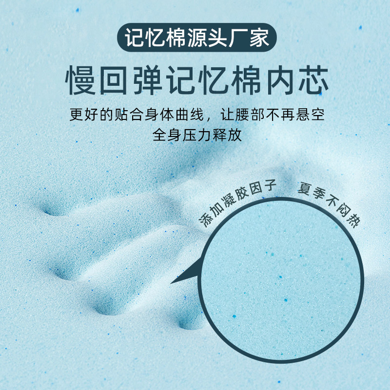 太空凝胶记忆棉床垫慢回弹软垫,专为居家与租房设计,兼顾舒适与实用。采用高密度记忆棉内芯,融入太空凝胶颗粒,有效分散体压,贴合人体曲线,提供均匀支撑,缓解疲劳。慢回弹特性让翻身更安静,减少干扰,提升睡眠质量。表层亲肤透气面料,吸湿排汗,四季干爽舒适。薄款设计(约5-8cm),轻便易收纳,特别适合榻榻米、地台床或临时床铺使用。可卷折包装,搬家携带方便,是租房族、学生宿舍及小户型家庭的理想选择。防滑底面设计,稳固不移位,安全省心。