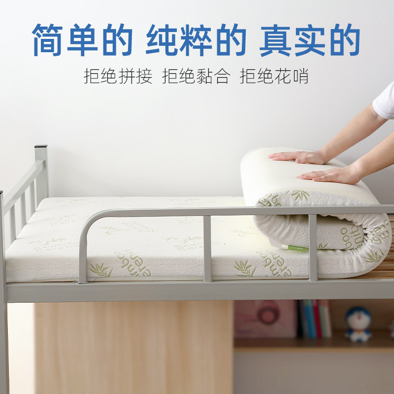 太空凝胶记忆棉床垫专为学生宿舍设计,尺寸90×190cm,完美适配上下铺单人床。采用高密度海绵与太空凝胶记忆棉复合结构,兼具支撑性与舒适度,有效缓解身体压力,提升睡眠质量。凝胶层具备透气散热功能,夏季使用更凉爽,避免闷热出汗。床垫软硬适中,贴合人体曲线,保护脊椎健康。表层亲肤透气面料,防螨抗菌,易于清洁打理。整体轻便易搬运,适合学生寝室、宿舍、出租屋等场景。无论是上铺还是下铺,都能提供安稳舒适的睡眠体验,是学生党高性价比的睡眠之选。
