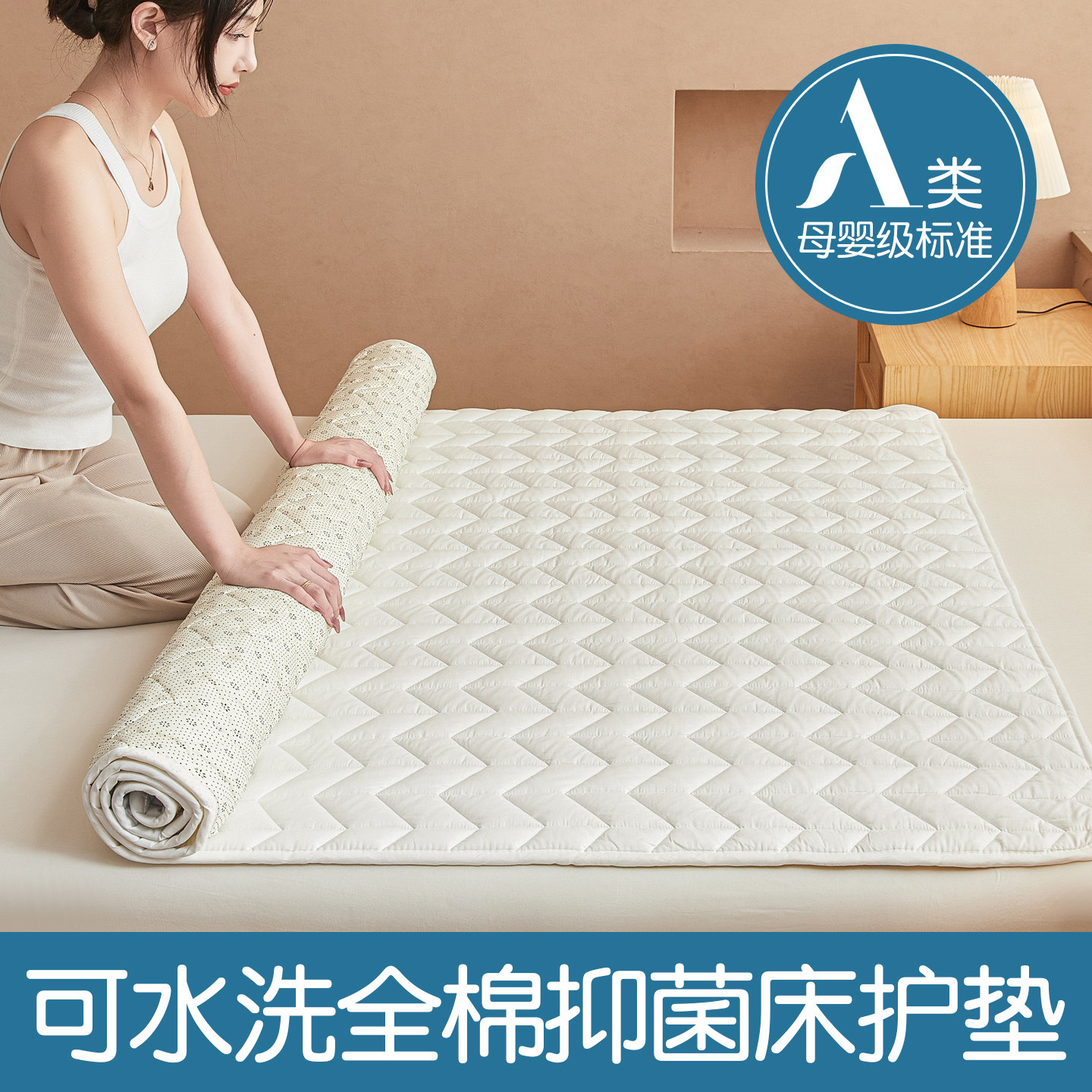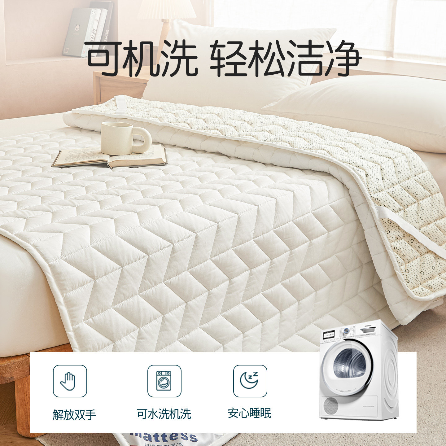 梦蔻抑菌床垫保护垫是一款集舒适、健康与实用于一体的家用床褥垫。采用优质全棉面料,亲肤透气,触感柔软,有效呵护肌肤。内置高效抑菌材质,有效抑制细菌滋生,守护家人睡眠健康。薄款设计贴合床垫,铺底稳固,防滑底面设计不易移位,使用更安心。兼具保护床垫与提升睡眠舒适度双重功能,适用于各种床型。无论是日常使用还是季节更替,都能带来洁净、干爽的睡眠体验。梦蔻抑菌床垫保护垫,以贴心设计和高品质材料,为您的家居生活增添一份安心与舒适。